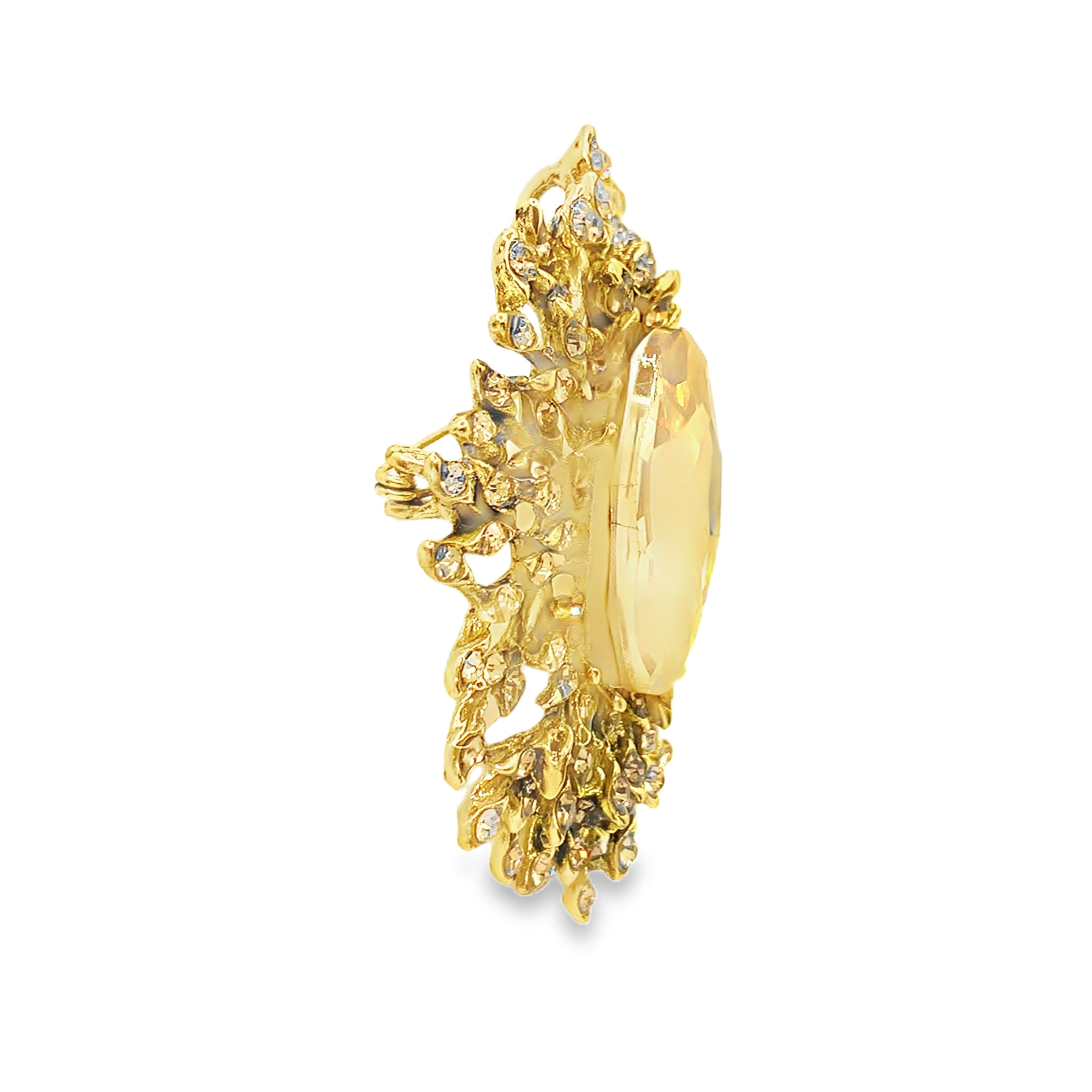 Pozłacana broszka sunburst z owalnym kamieniem w odcieniu szampańskim i fakturowanym wykończeniem