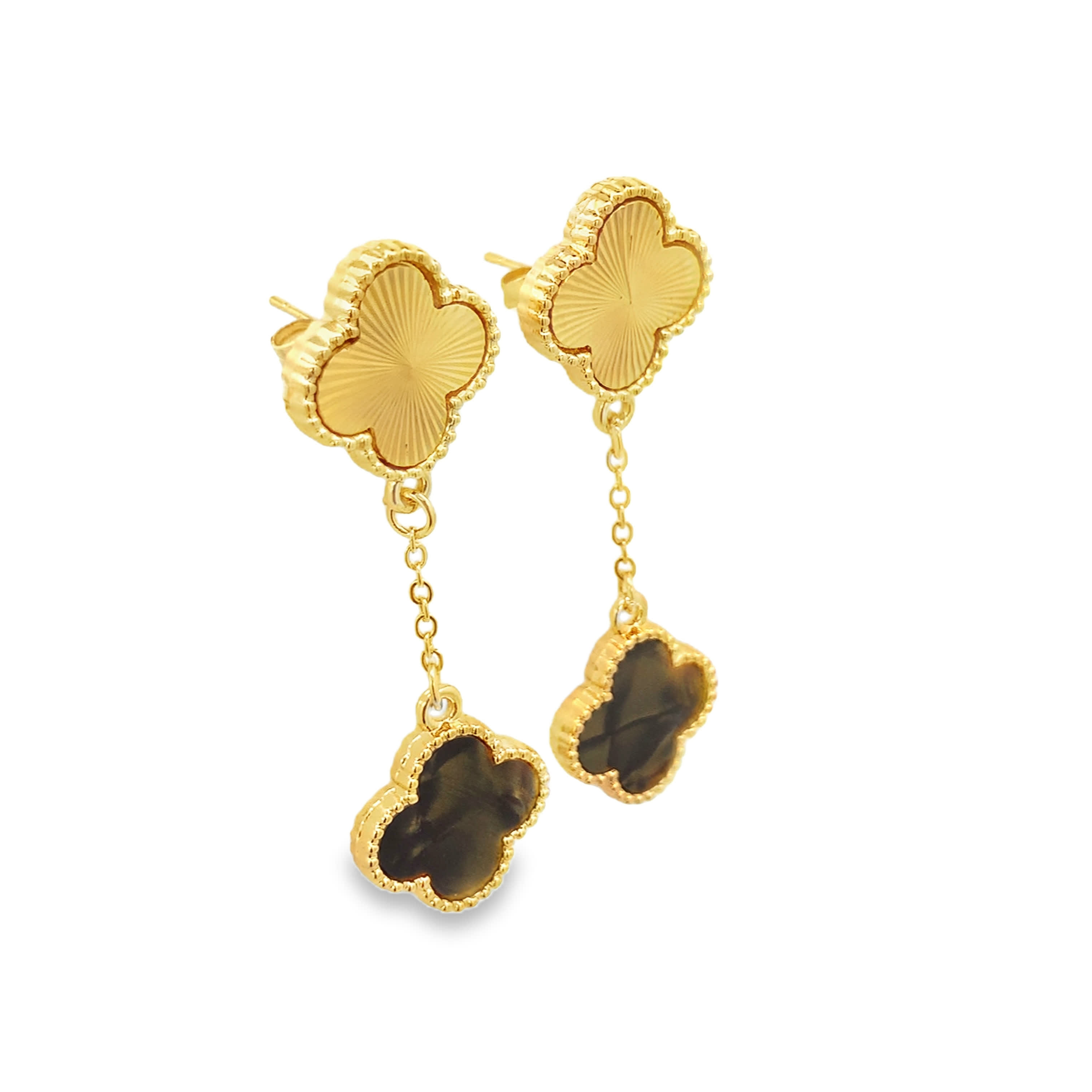 Pozłacane wiszące kolczyki koniczyna w stylu vintage z czarnym kamieniem