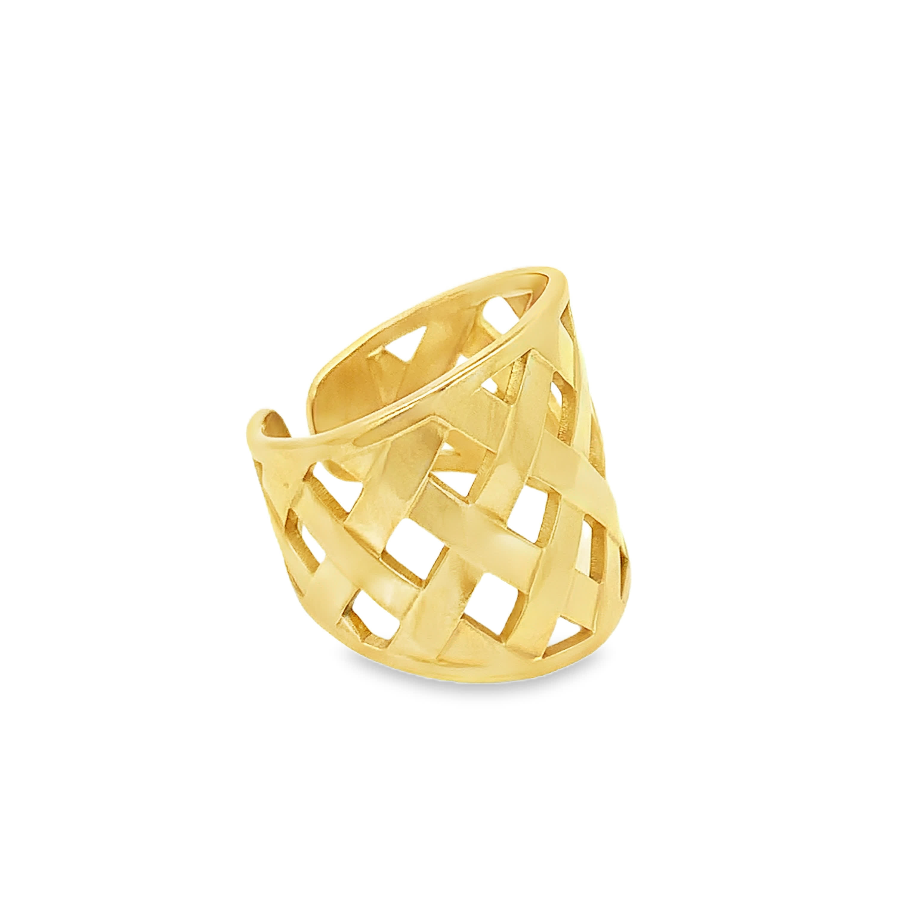 Polished Yellow Gold Lattice Basketweave Wide Band Ring
