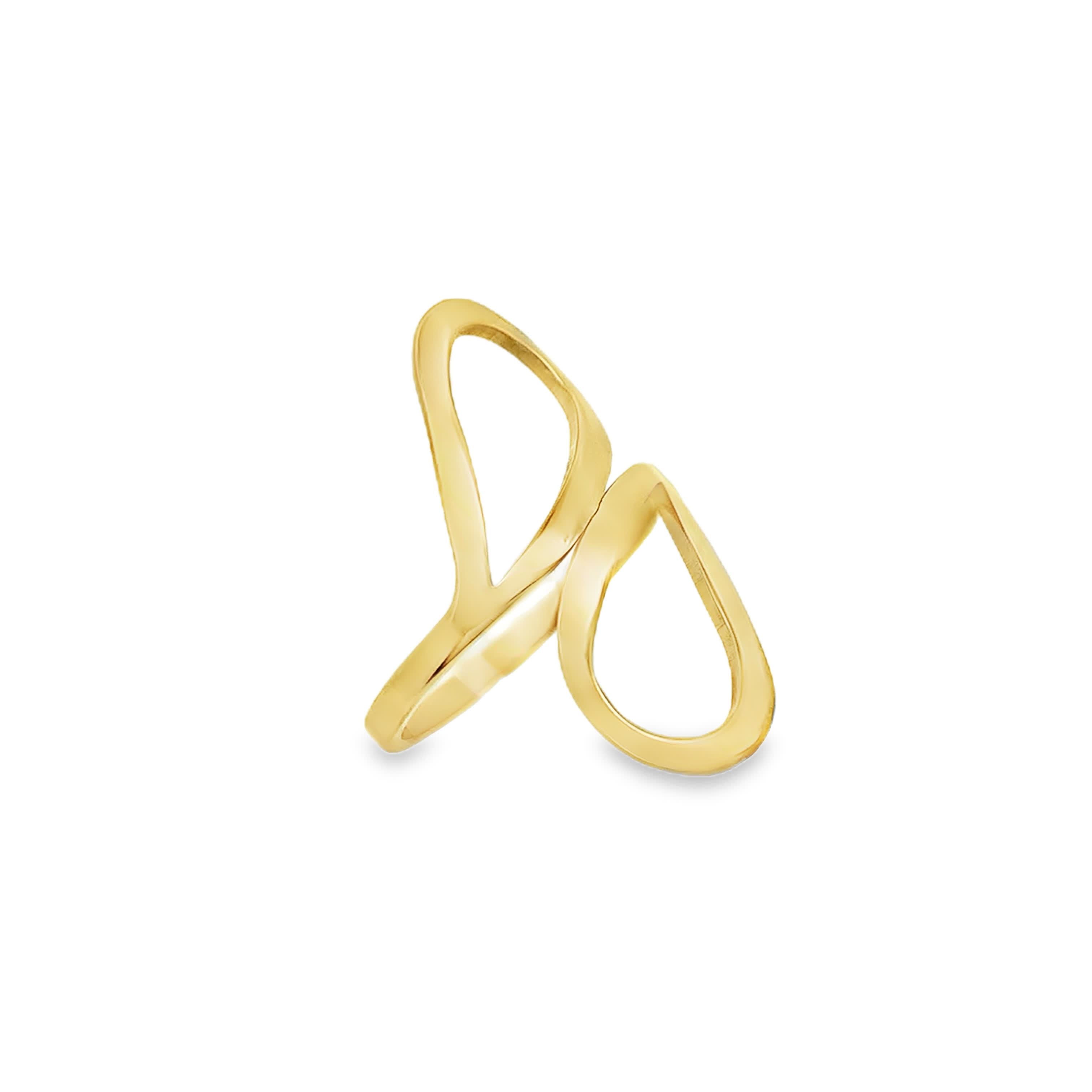 Sculptural Yellow Gold Open Dual-Teardrop Statement Ring