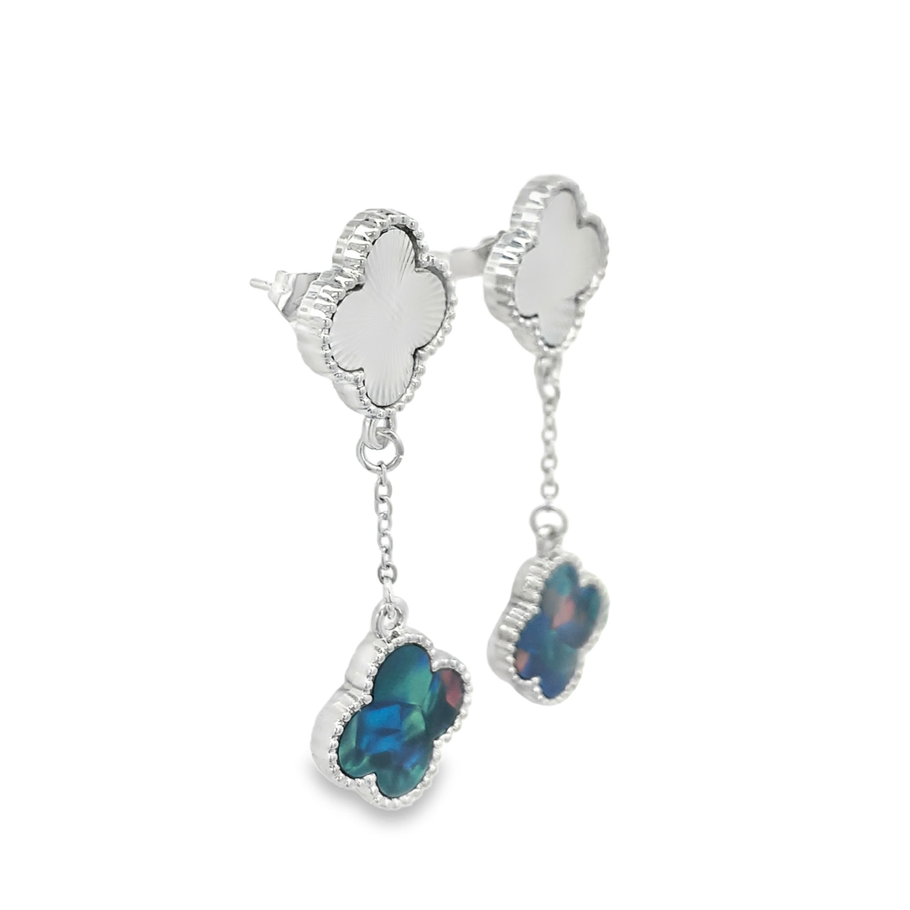 Agate and Guilloche Quatrefoil White Gold Drop Earrings