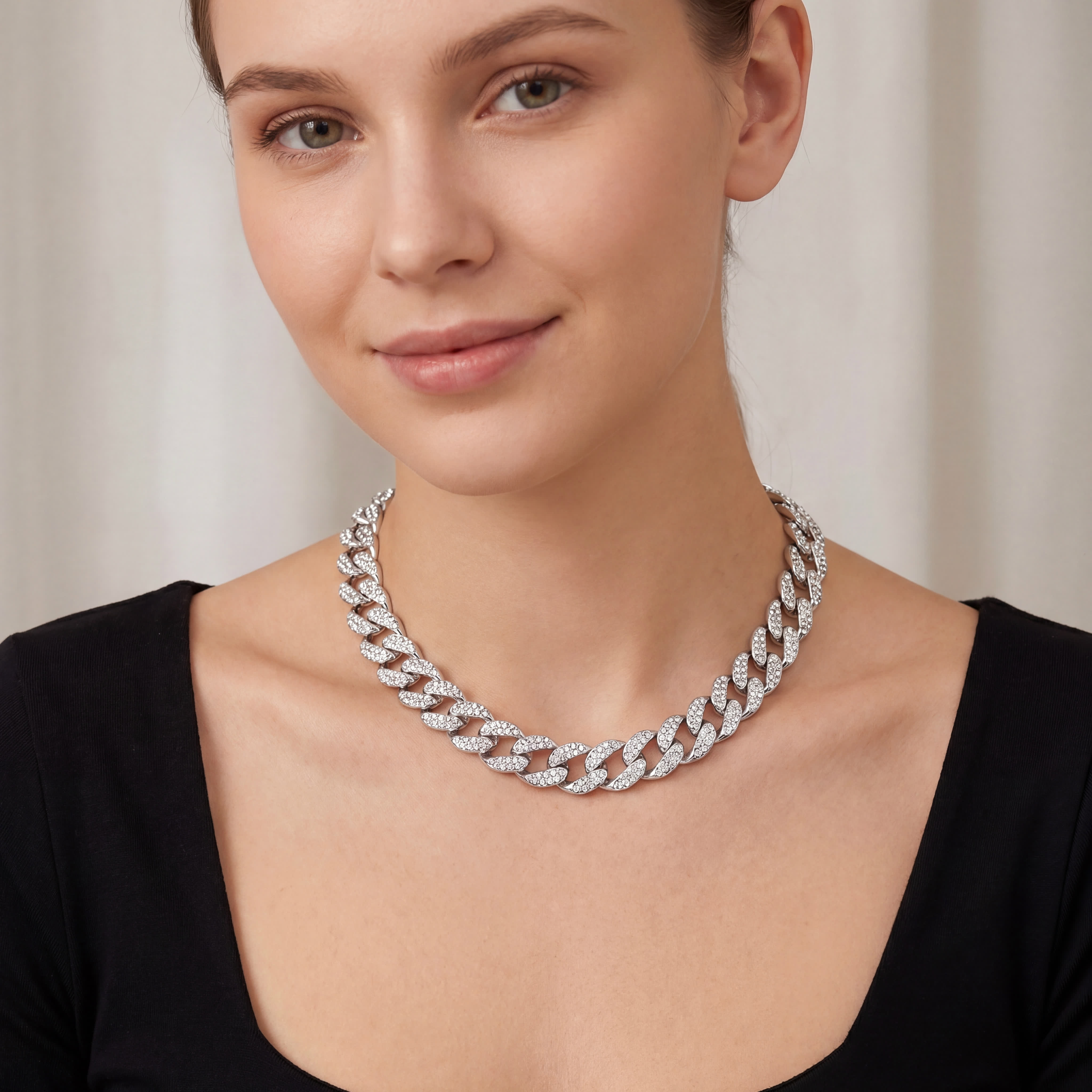 Silver-Toned Crystal Pavé Cuban Link Curb Chain Necklace