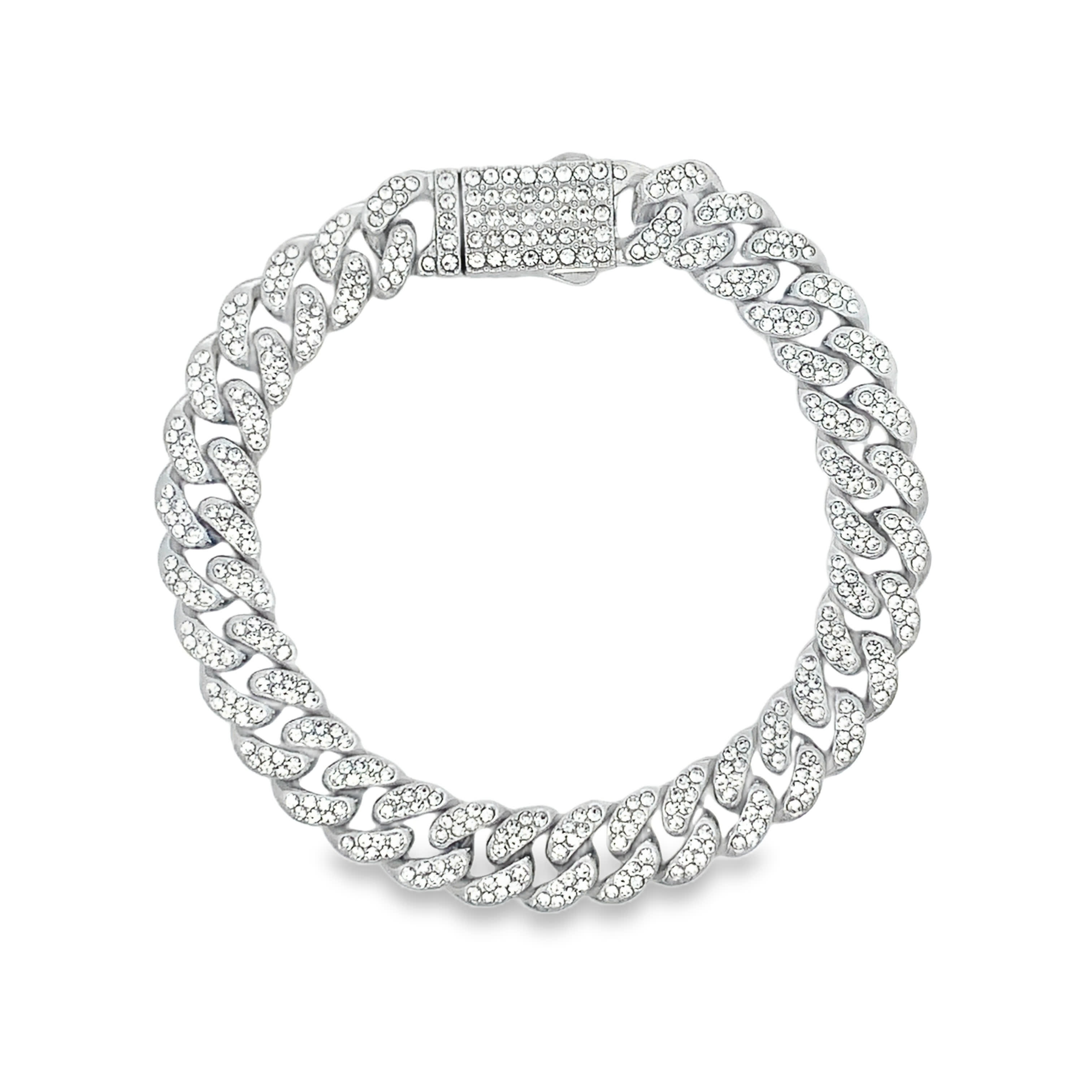 Bransoletka łańcuch cuban z kamieniami, jasne pozłacanie