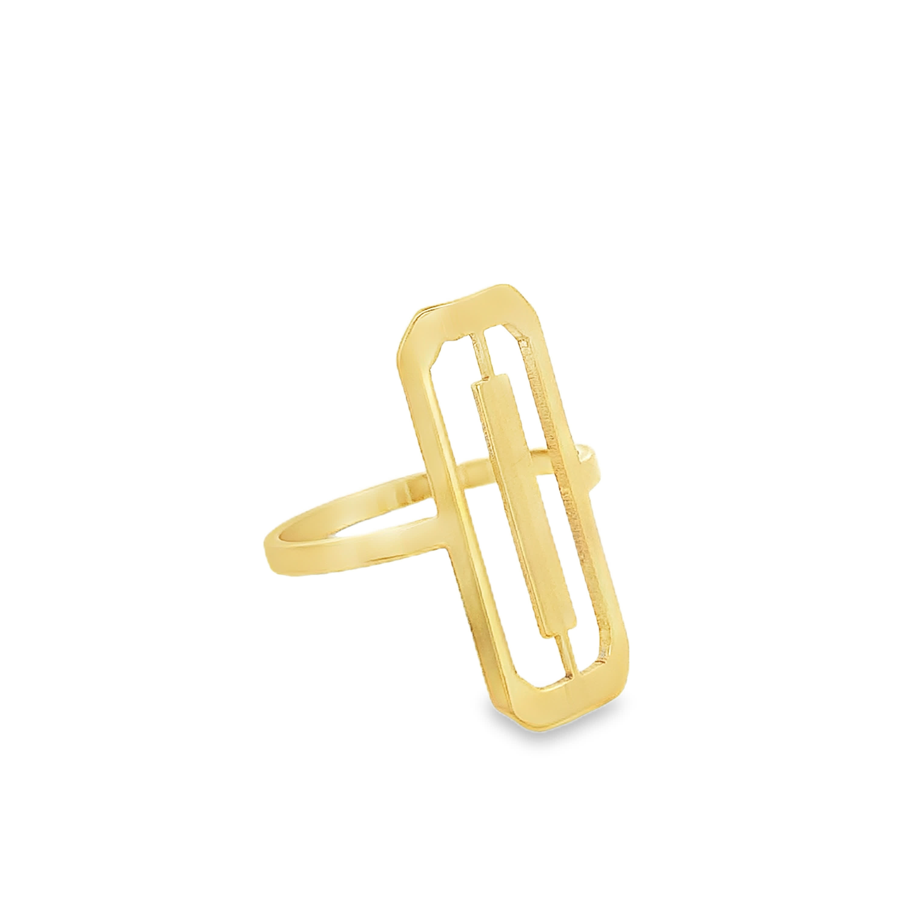 Modern Geometric Openwork Statement Ring in Yellow Gold