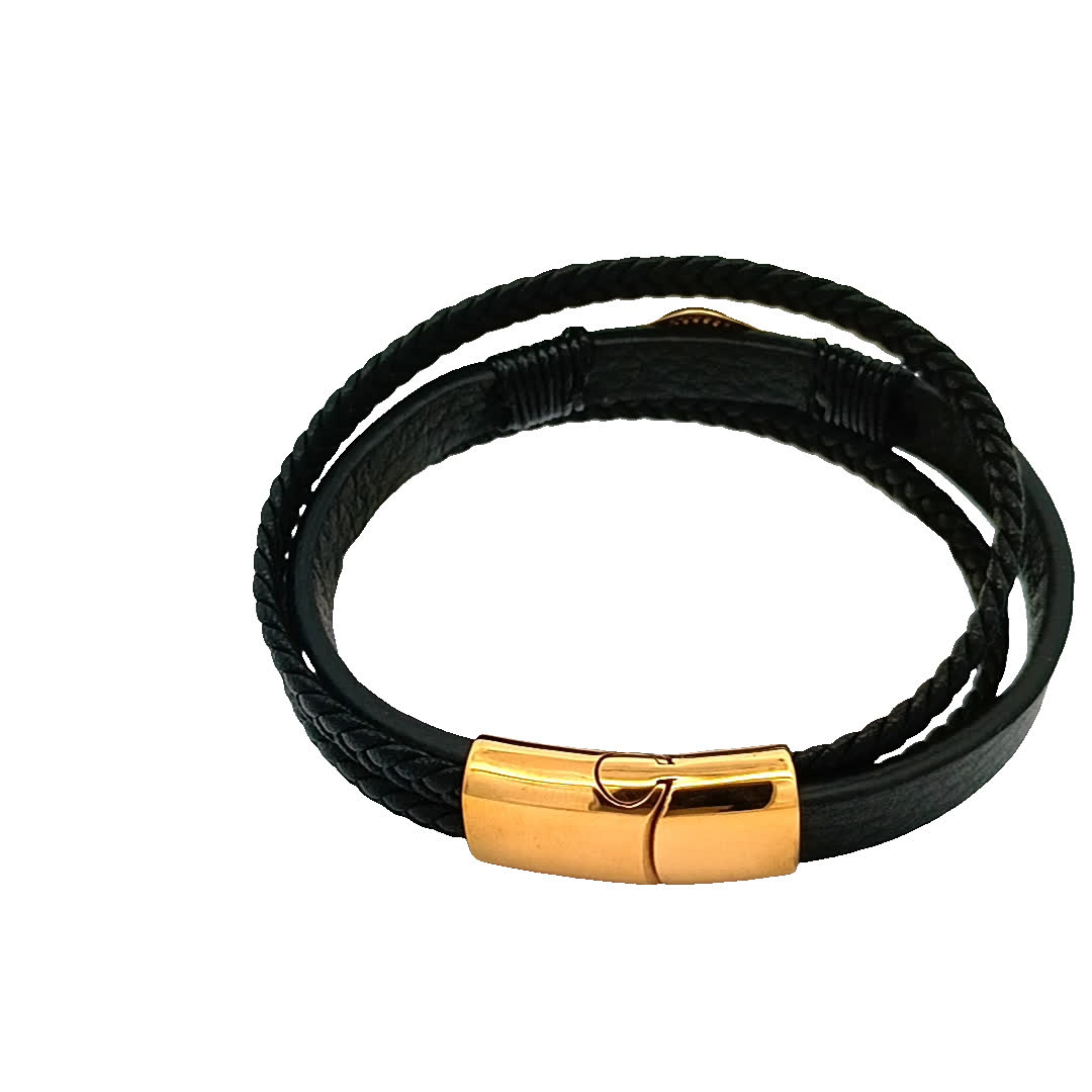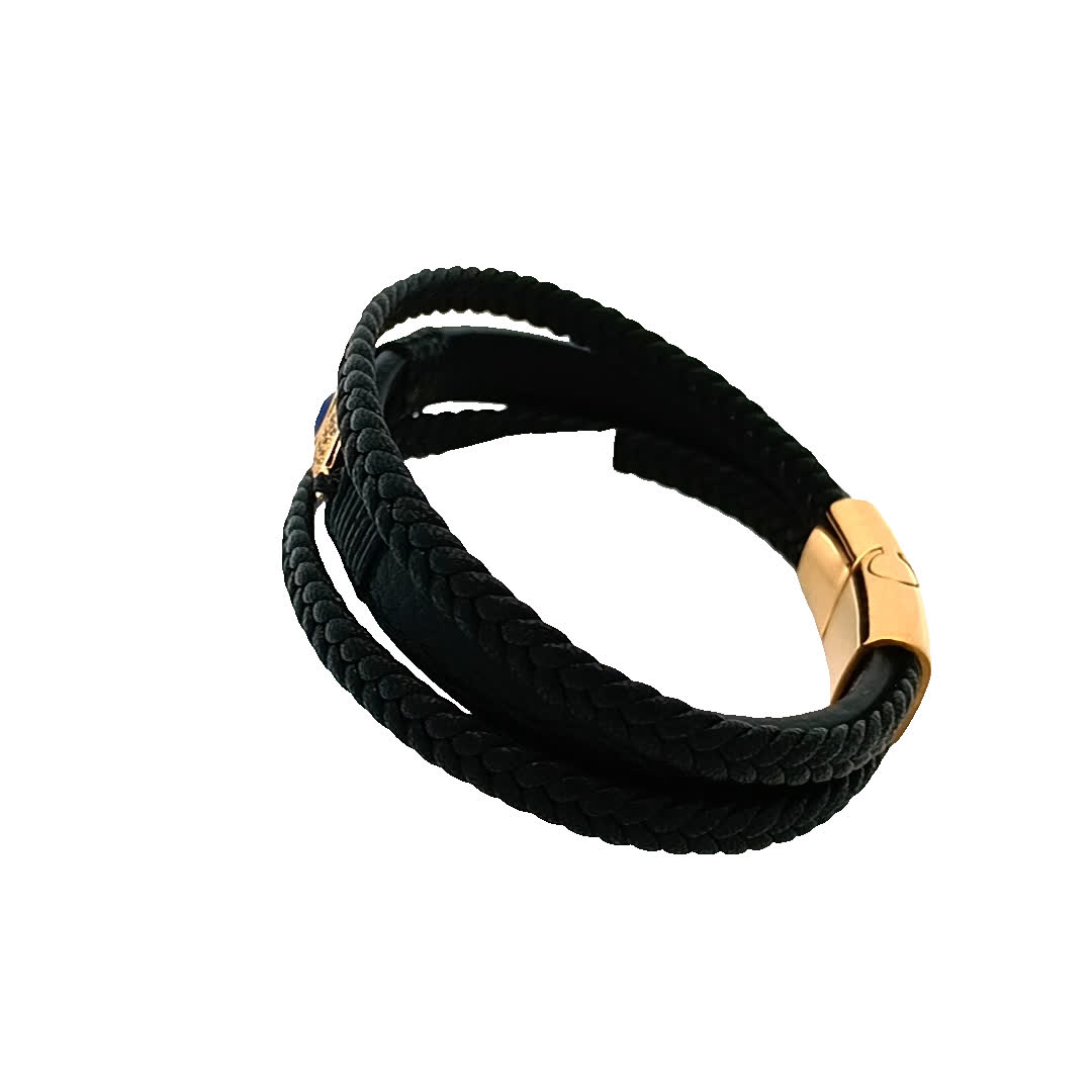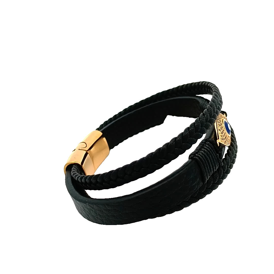Ta oszałamiająca czarna skórzana bransoletka ma wyjątkowy design z uderzającym urokiem złego oka. Misterne detale i pleciona faktura sprawiają, że jest to idealny dodatek zarówno do codziennych, jak i formalnych strojów. Podnieś swój styl i odpędzaj negatywność dzięki temu modnemu elementowi.