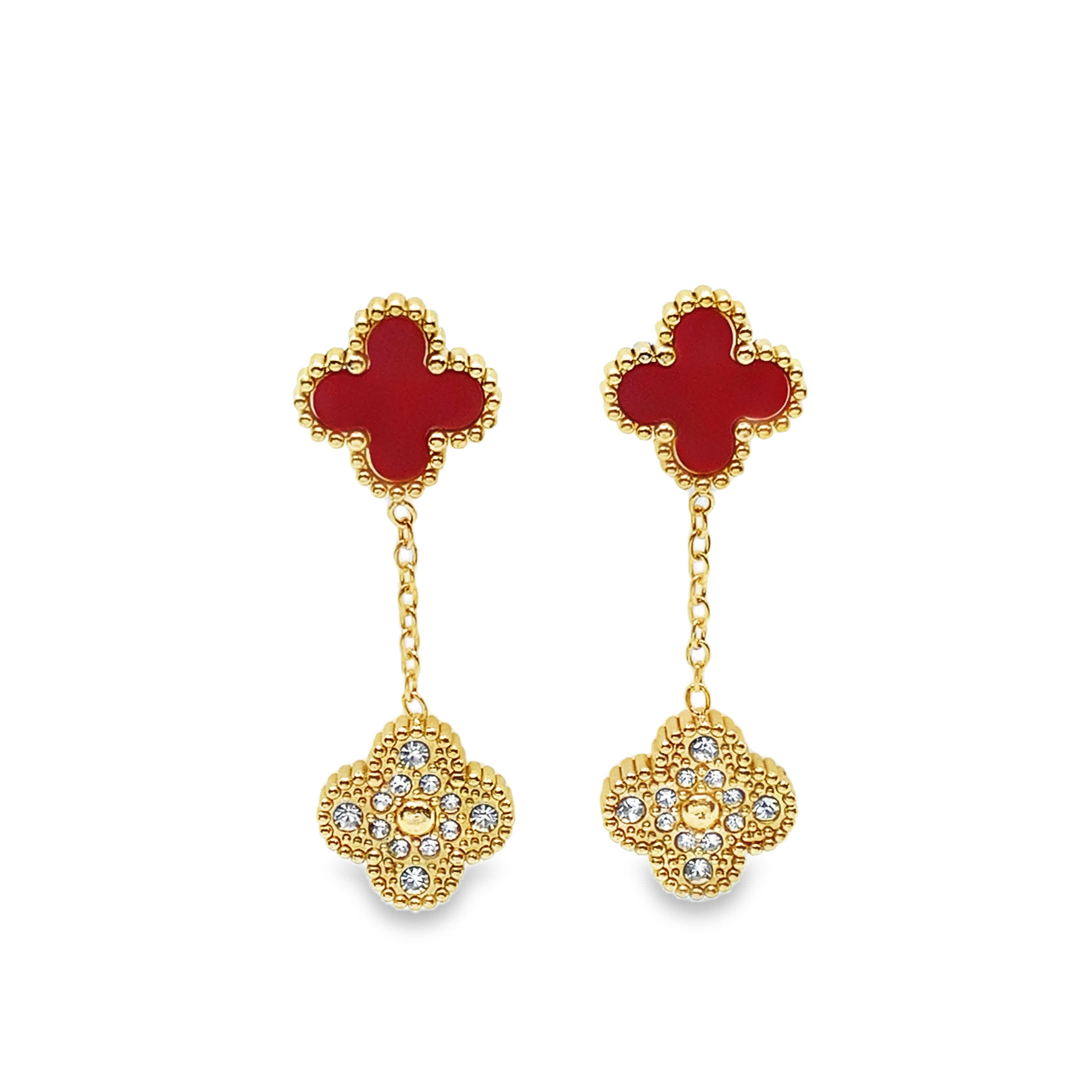 Kolczyki wiszące z motywem koniczyny i kryształkami