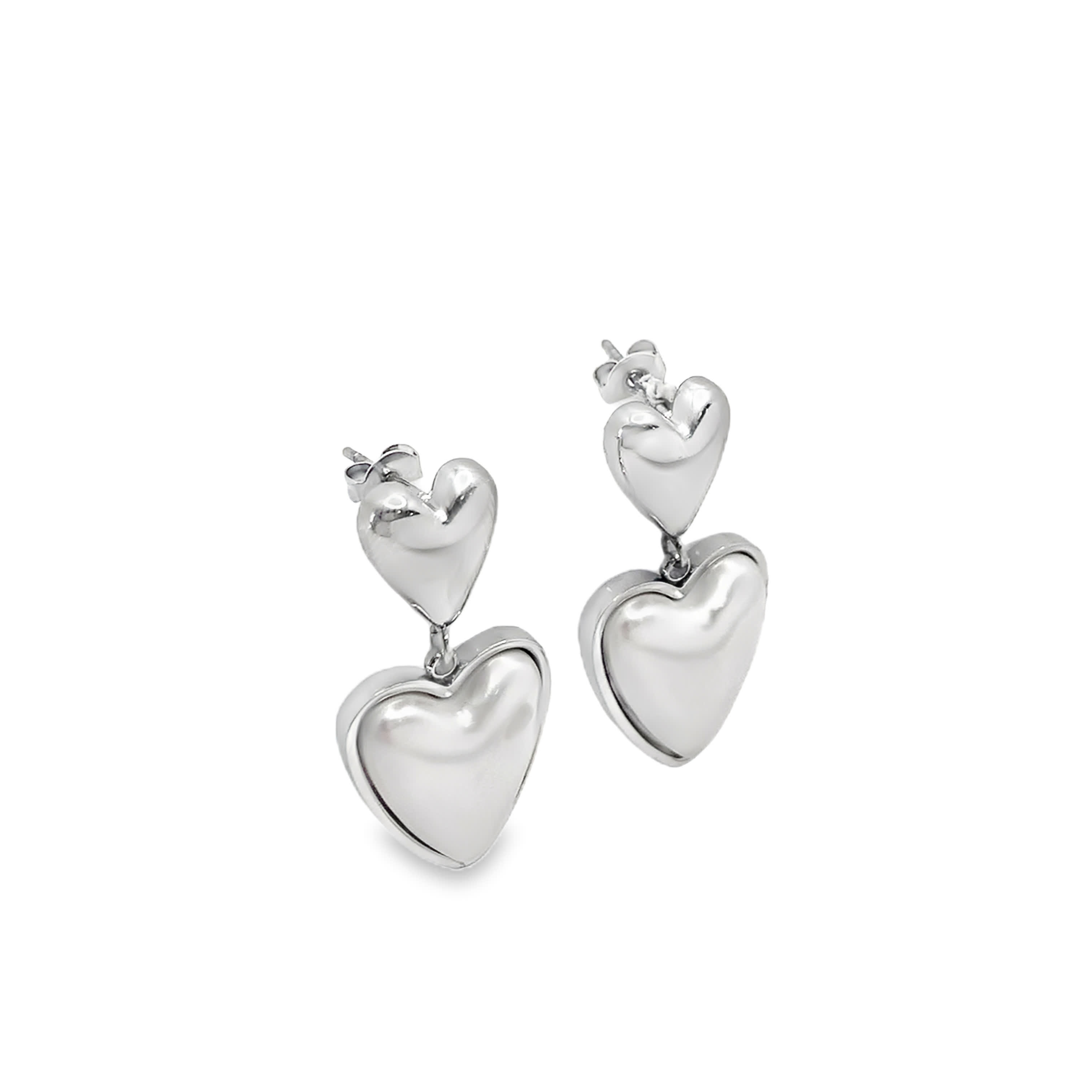 Silver Heart Dangle Earrings in White Gold Plated Finish