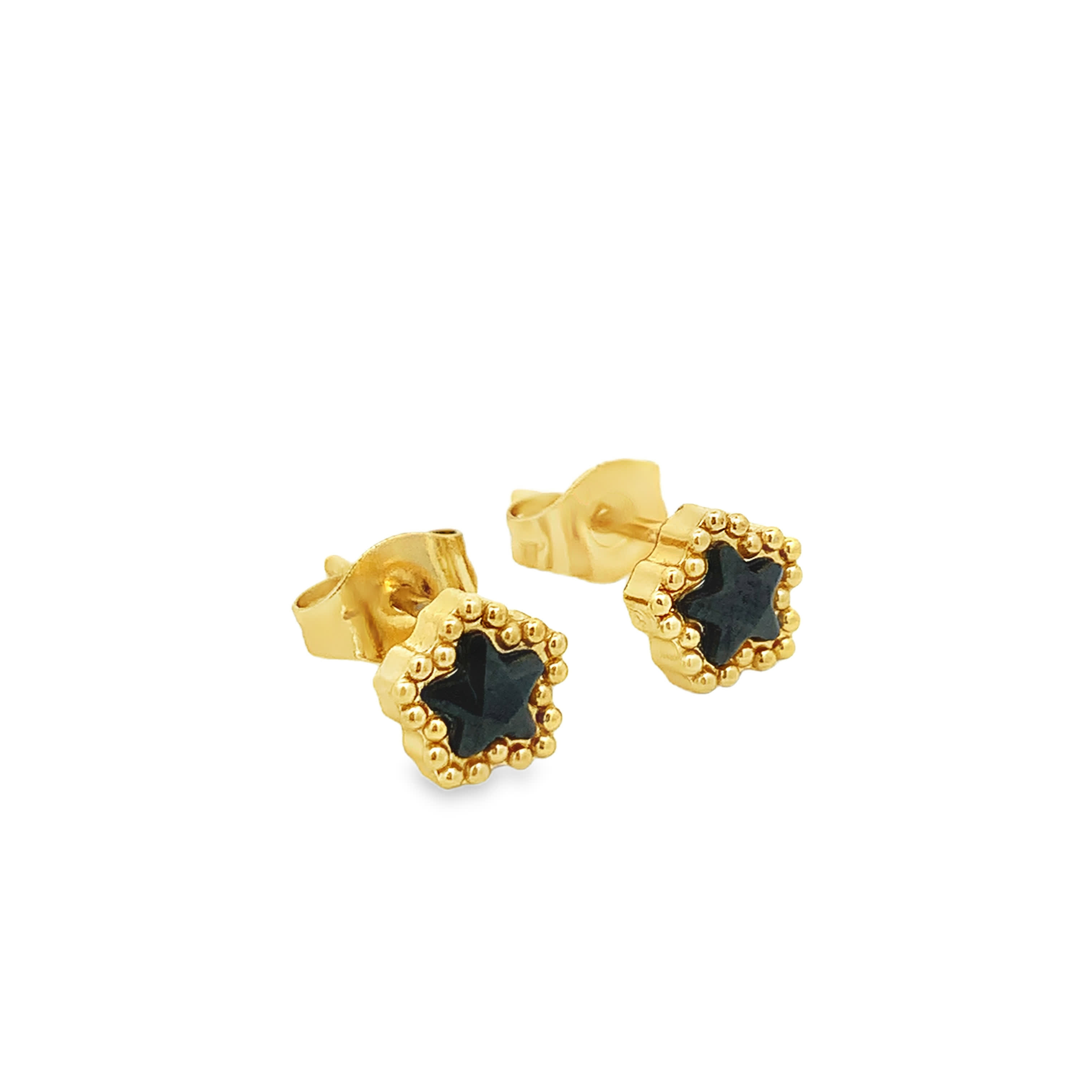 Kolczyki sztyfty gwiazdki z onyksem z pozłacanego metalu