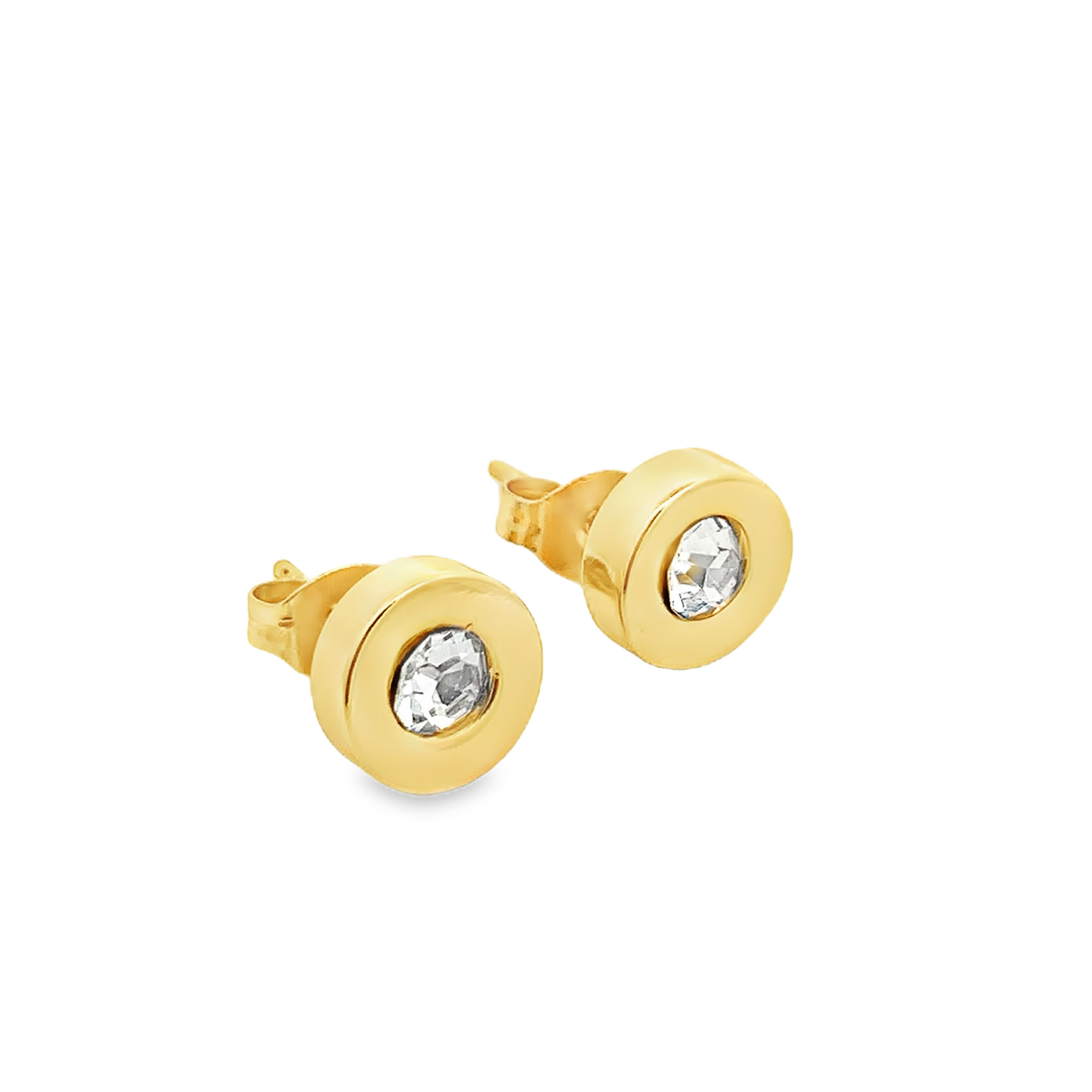 Kolczyki sztyfty z pozłacanego metalu z okrągłymi cyrkoniami o szlifie brylantowym