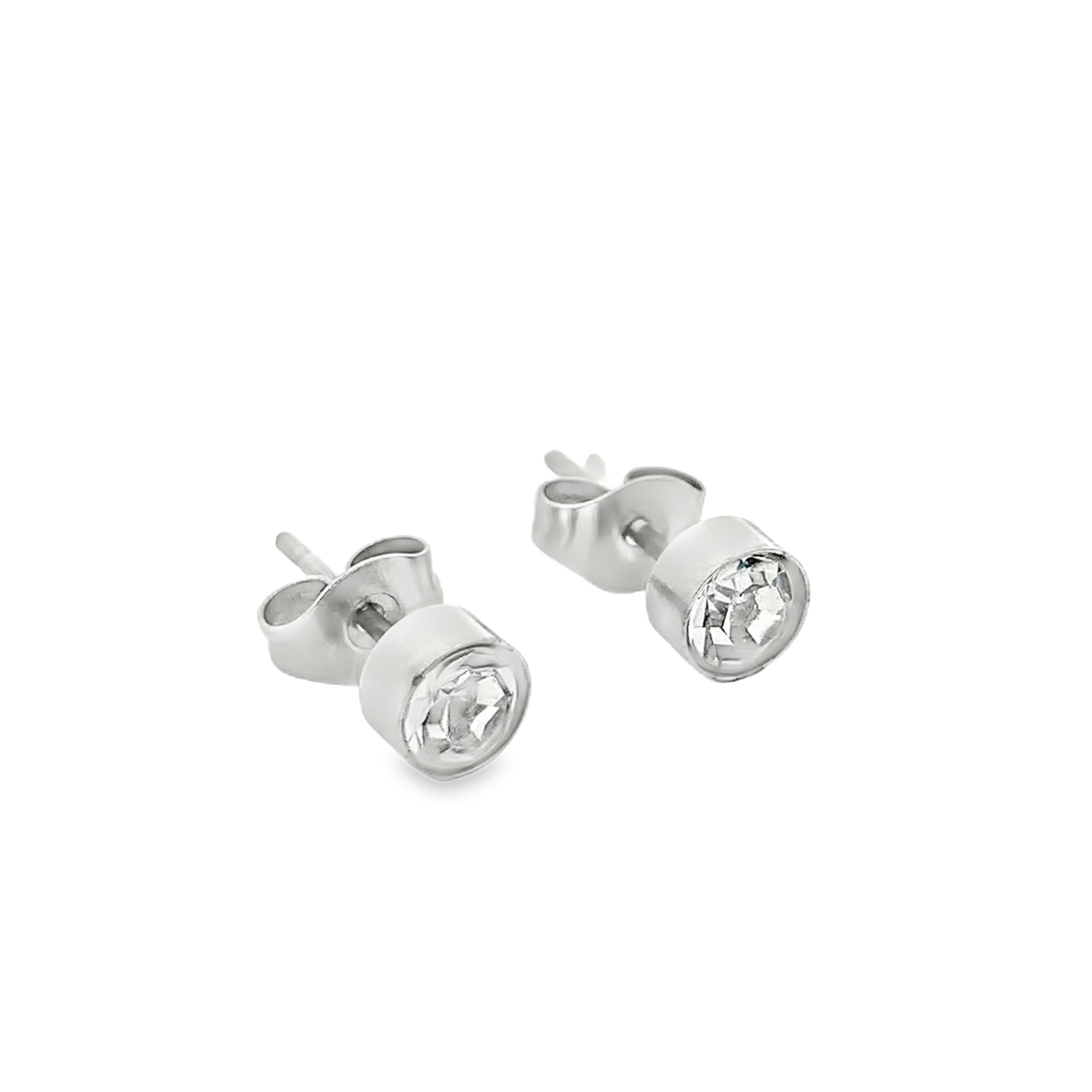 Kolczyki sztyfty z posrebrzanej stali z cyrkoniami o szlifie okrągłym