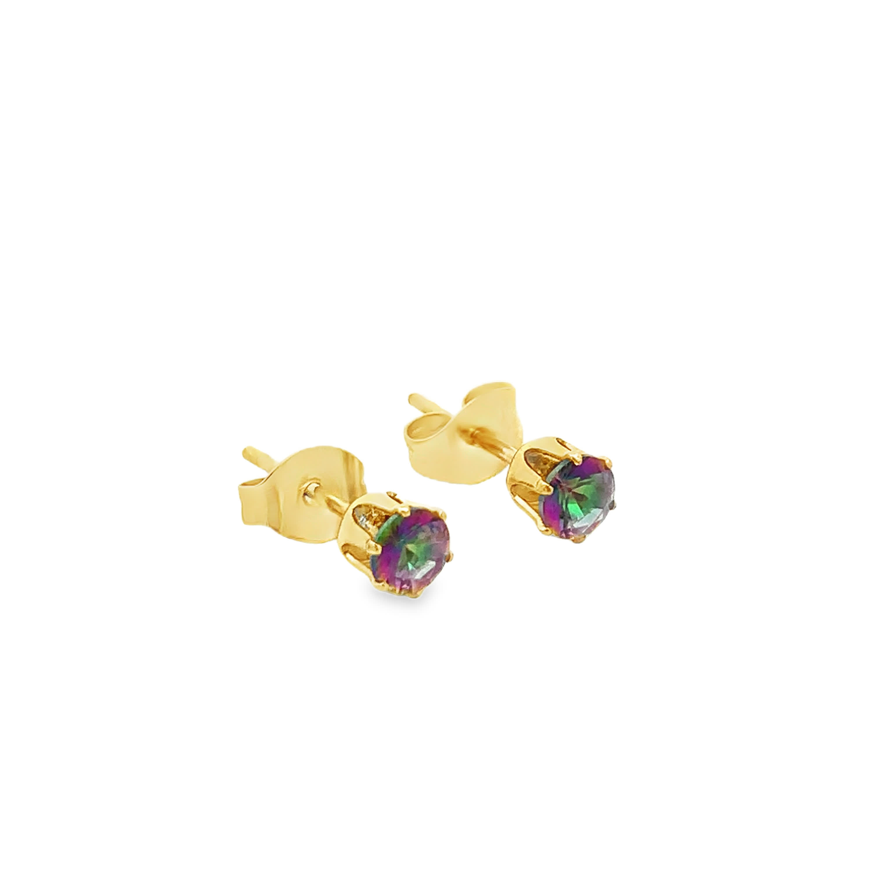 Kolczyki sztyfty ze stali złoconej z kwarcem o szlifie okrągłym