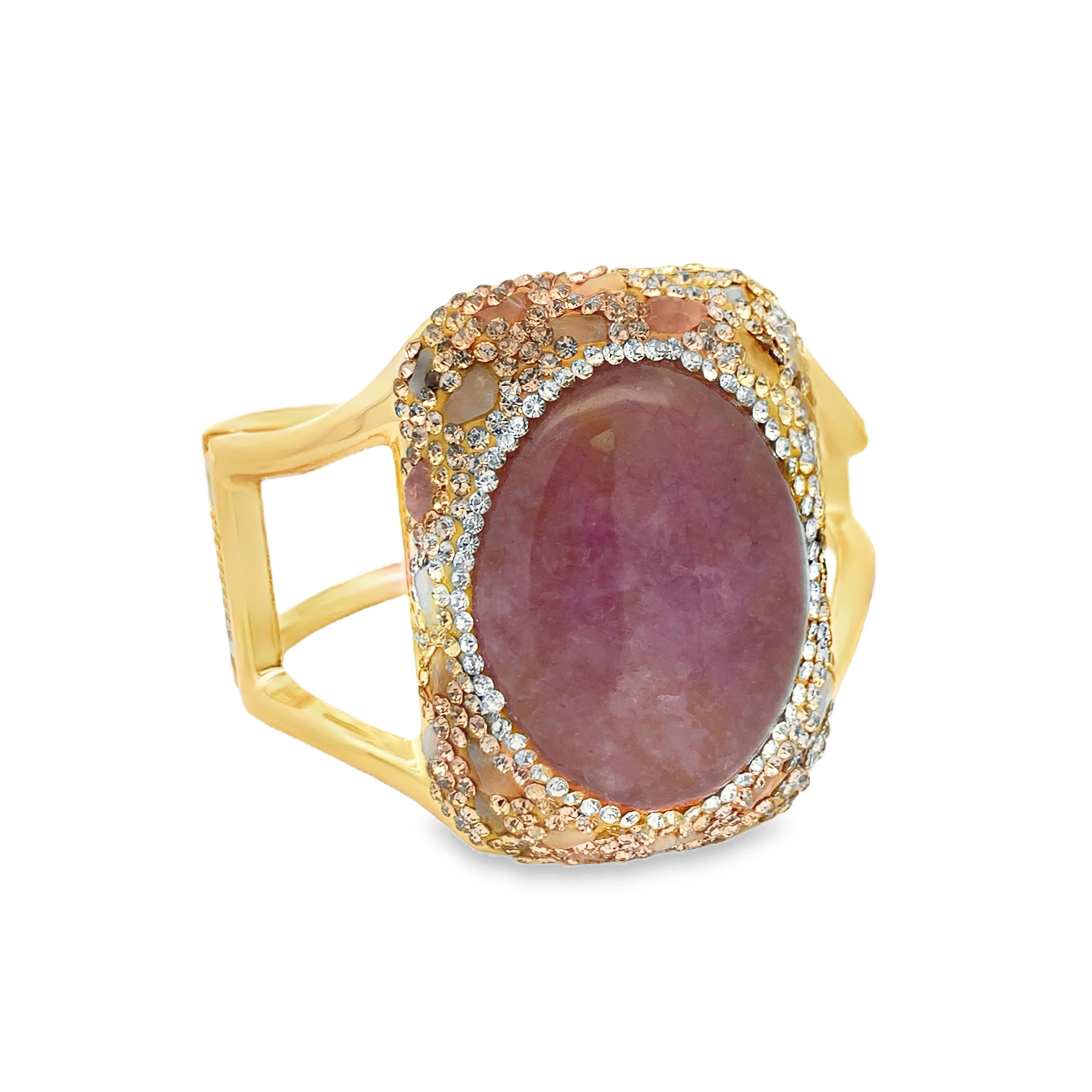 Yellow Gold Bangle Bracelet with Oval Amethyst Cabochon