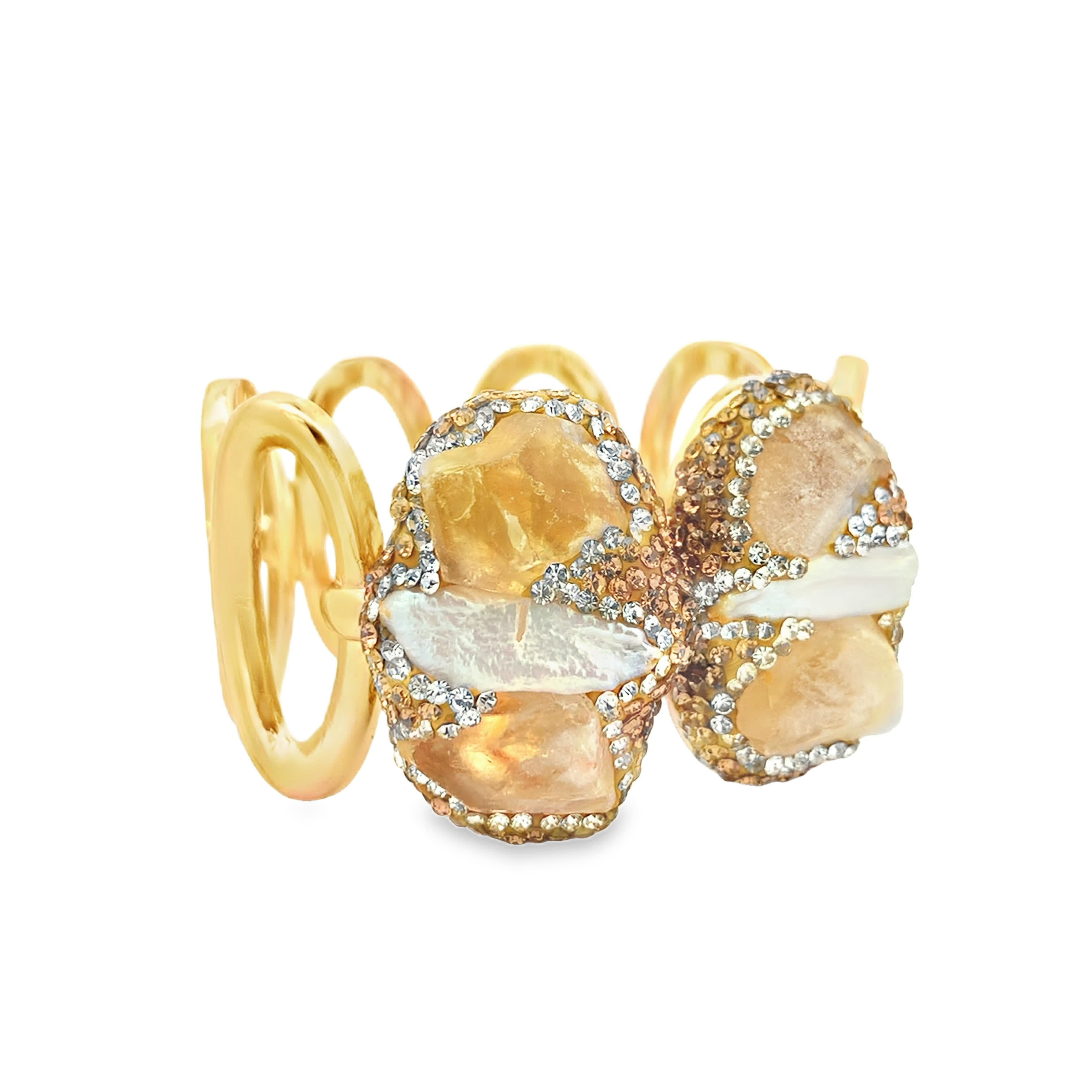 Sztywna bransoletka z pozłacanego metalu z kilkoma kamieniami ozdobnymi