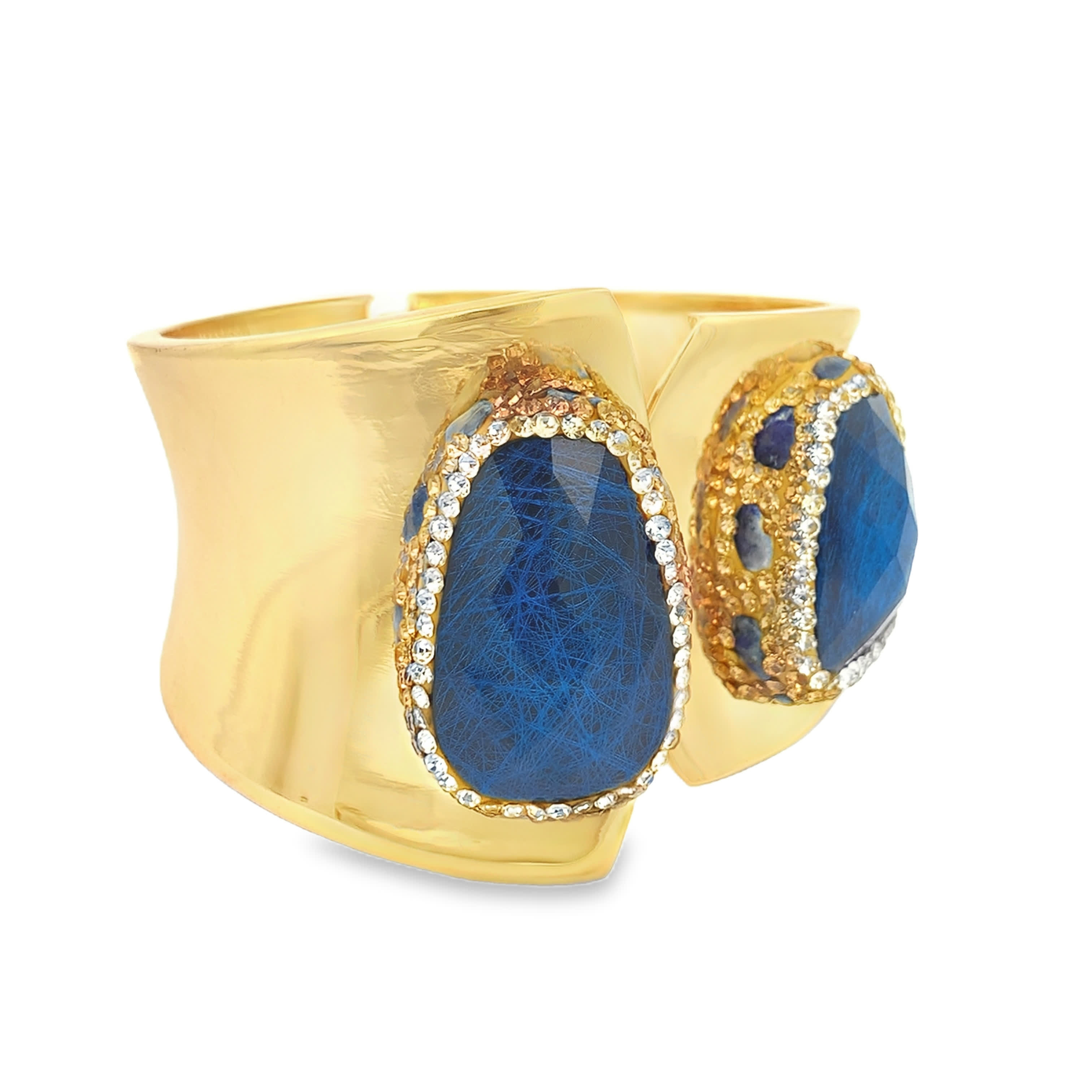 Sztywna bransoletka z pozłacanego metalu z niebieskim kamieniem ozdobnym