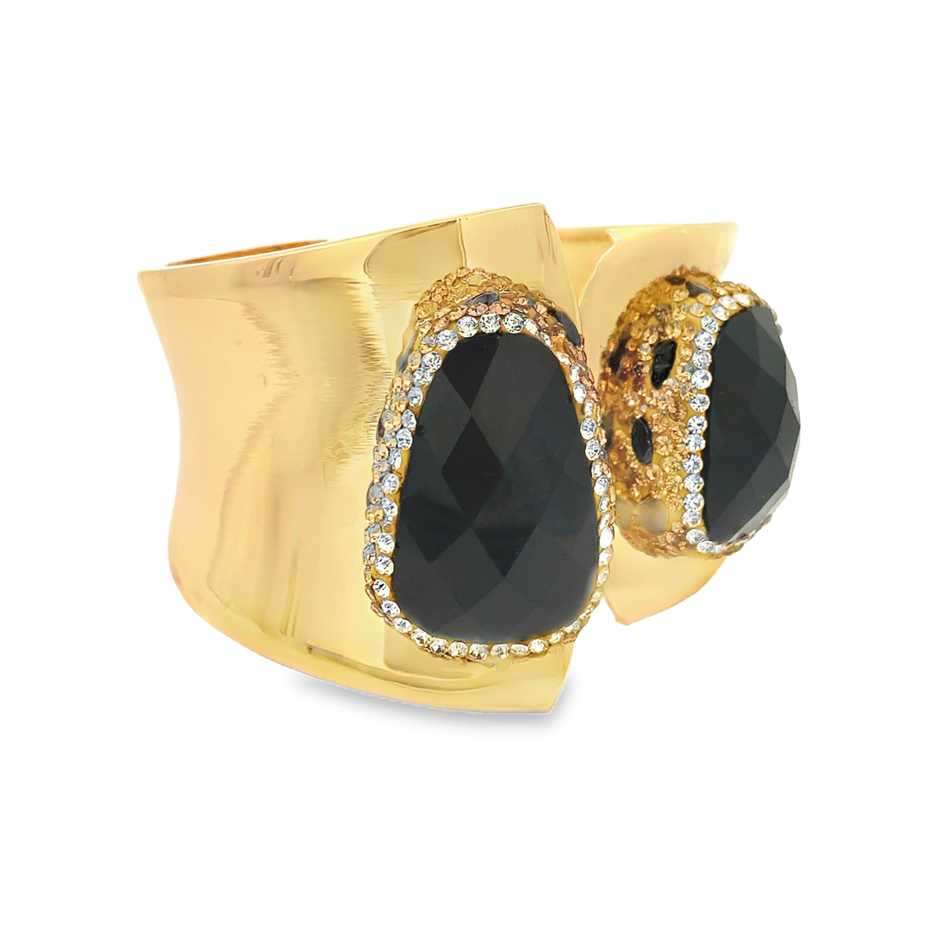 Sztywna bransoletka z pozłacanego metalu z owalnymi kamieniami ozdobnymi