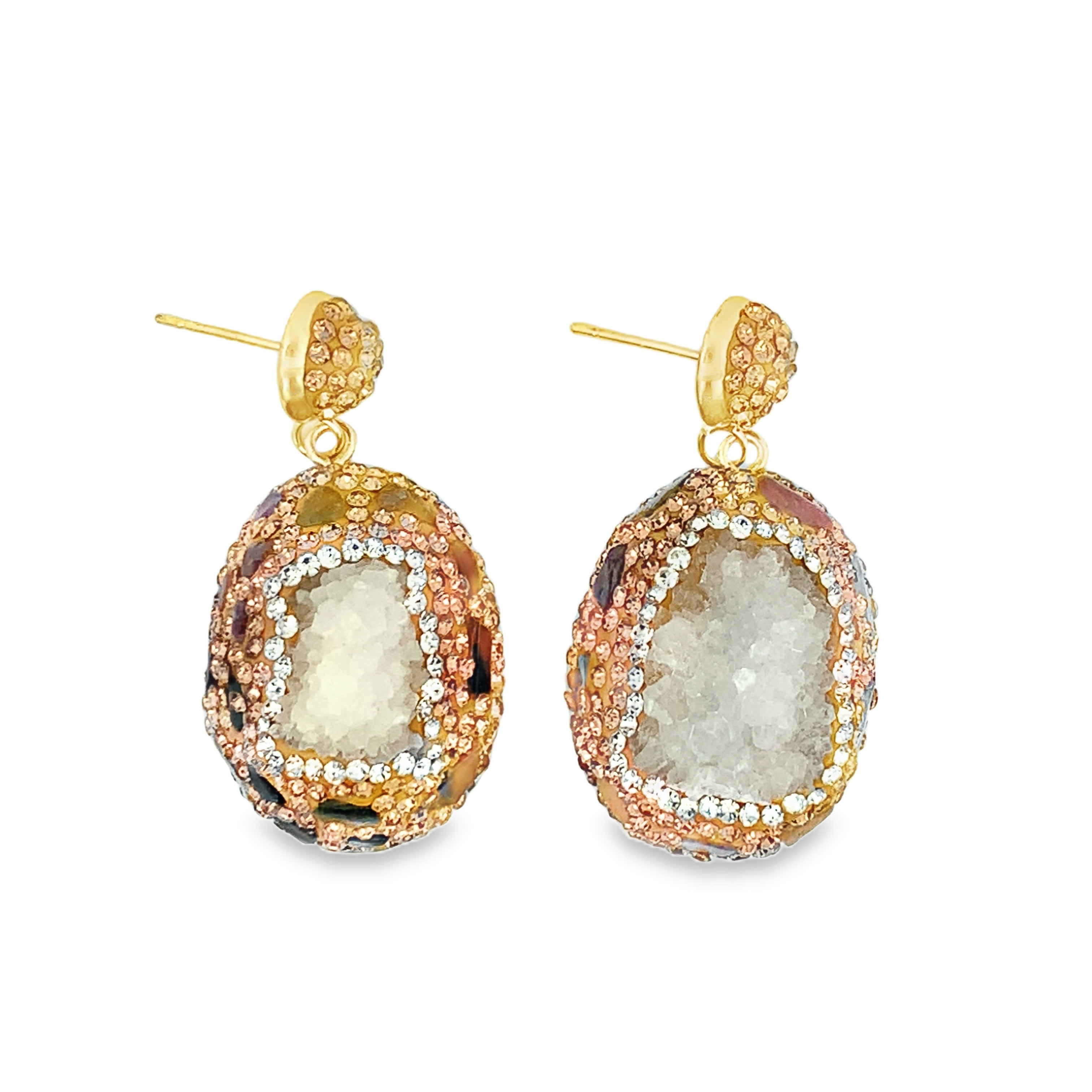 Yellow Gold Dangle Earrings with Oval Cabochon Quartz