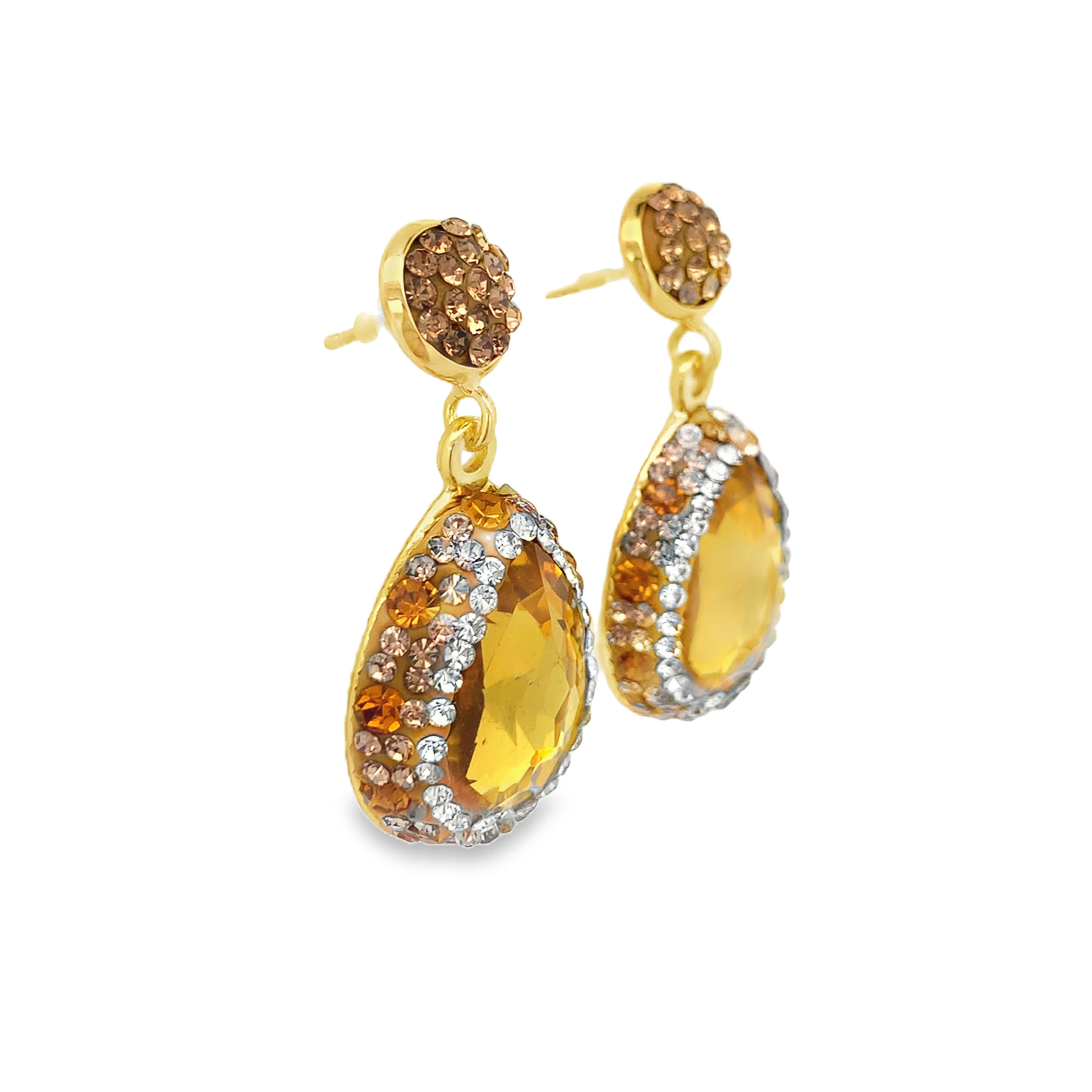 Yellow Gold Drop Earrings with Pear Cut Crystals