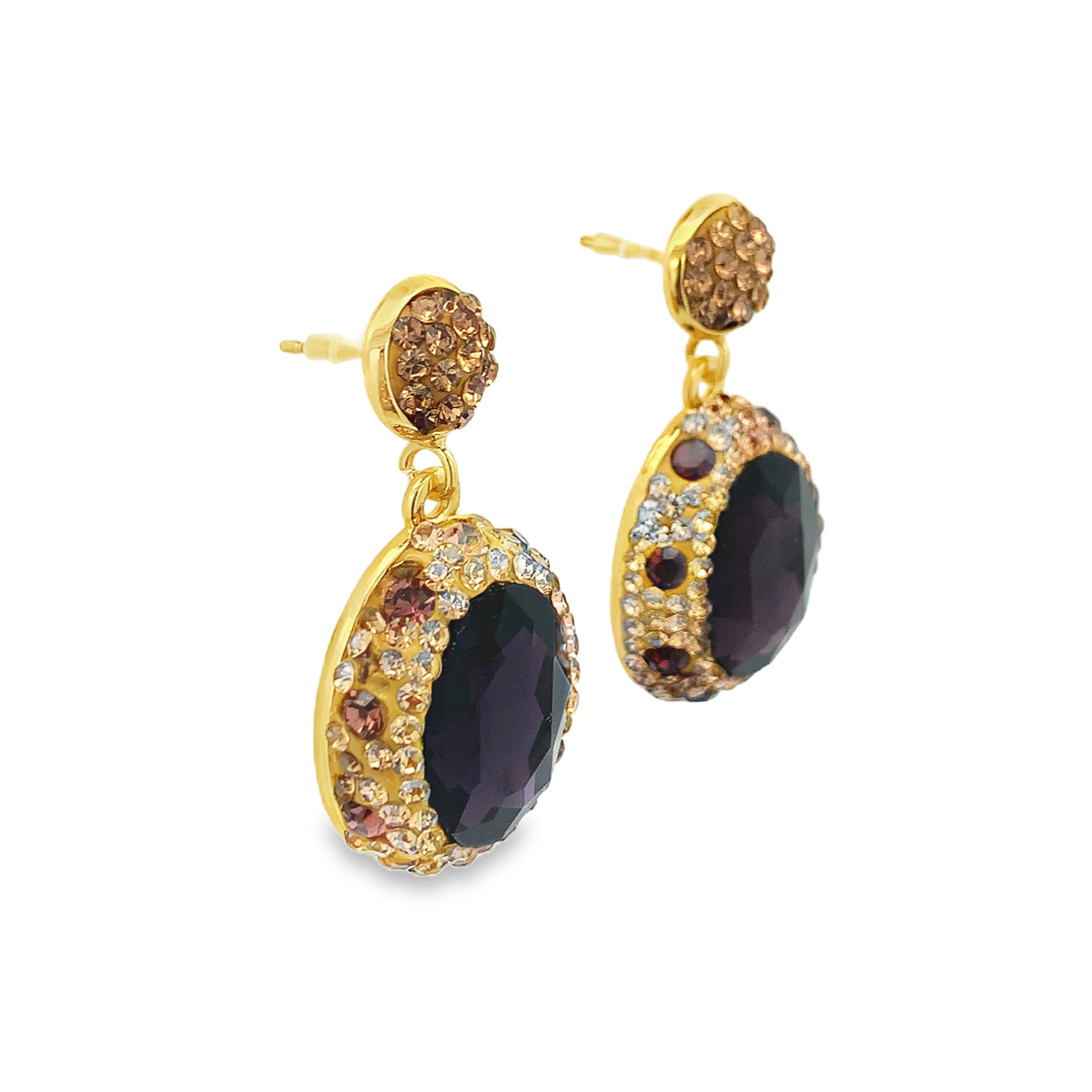 Yellow Gold Drop Earrings with Oval Cabochon Amethyst