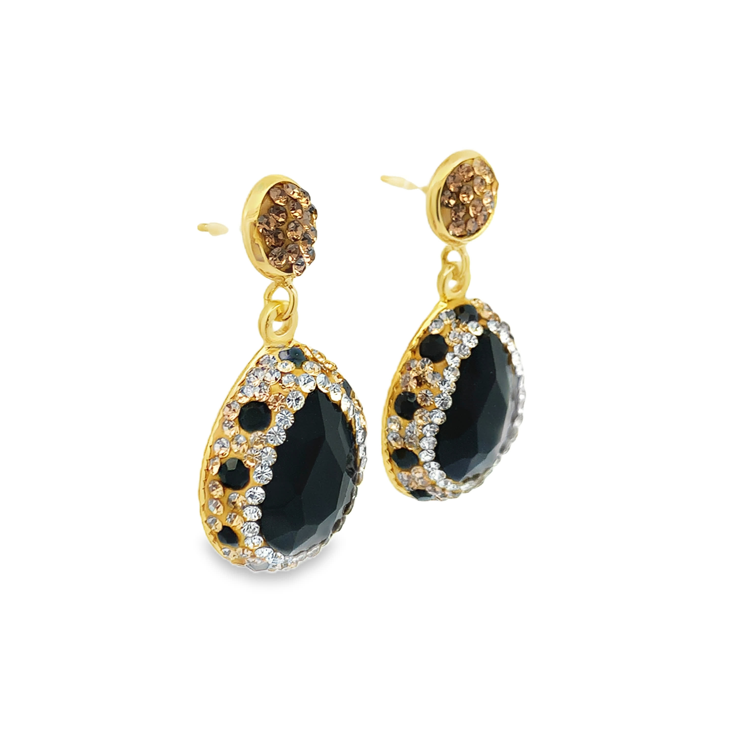 Kolczyki wiszące z pozłacanego metalu z kamieniami ozdobnymi w kształcie łezki