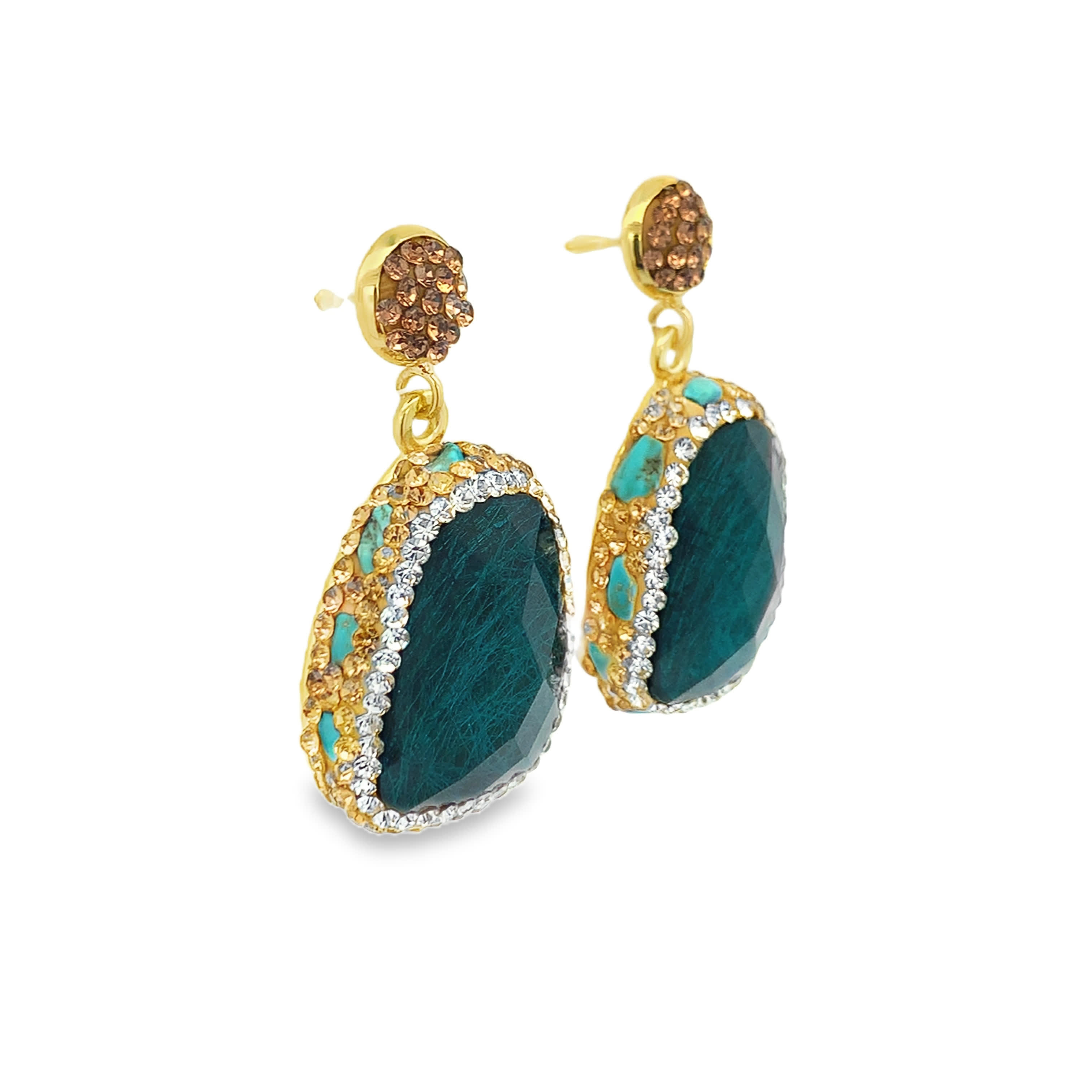Kolczyki wiszące z pozłacanego metalu z niebiesko zielonymi kamieniami ozdobnymi