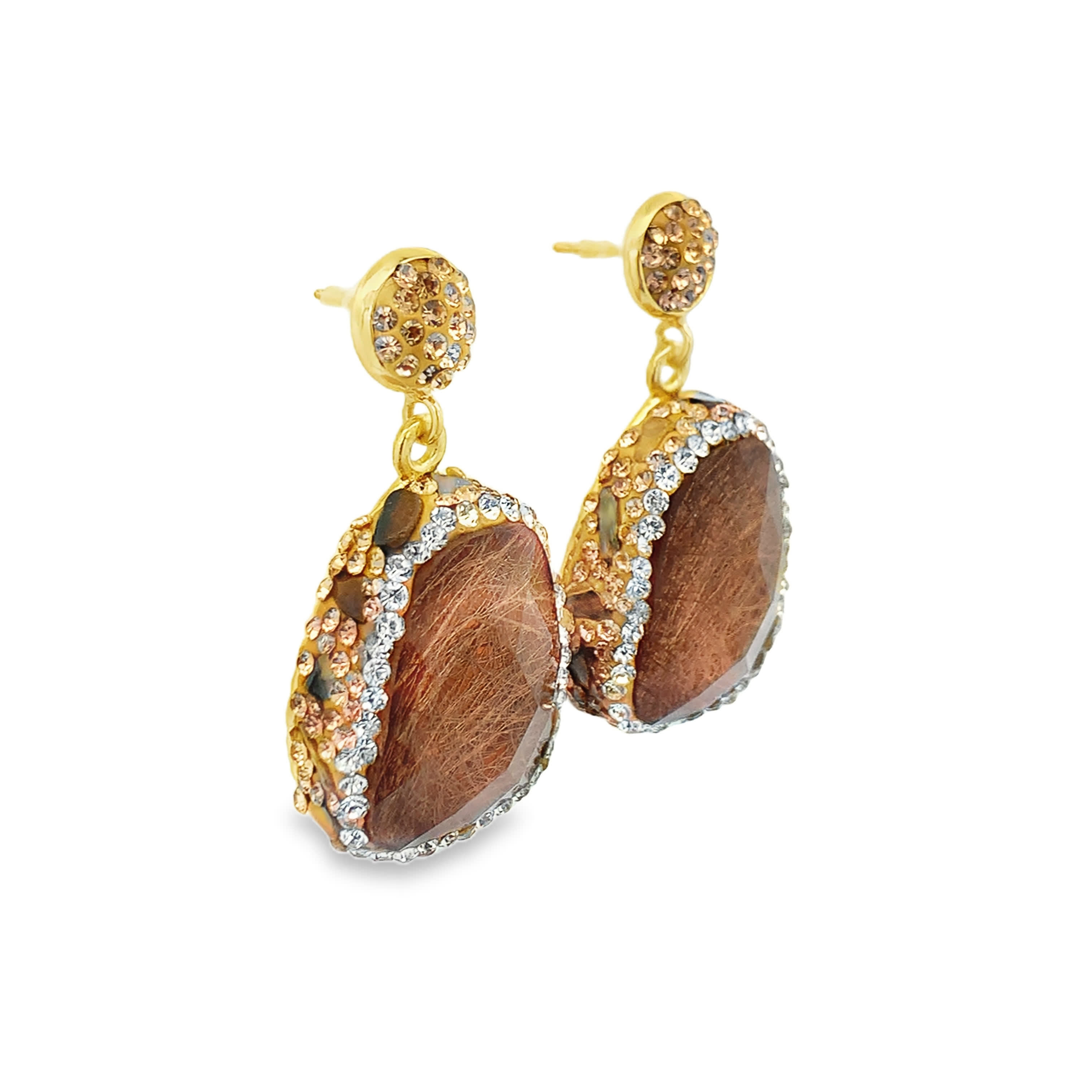Kolczyki wiszące z pozłacanego metalu z niebiesko zielonymi kamieniami ozdobnymi