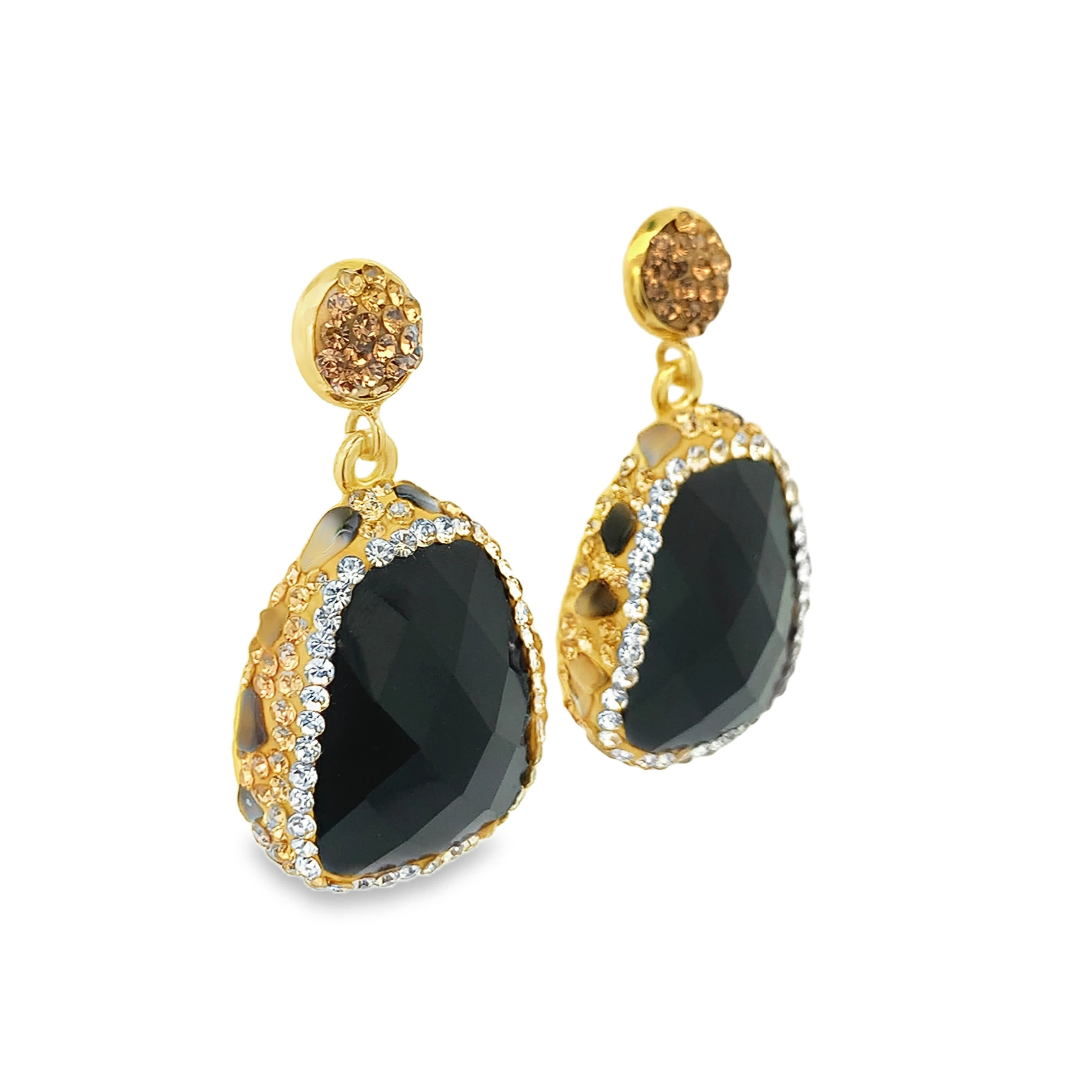 Kolczyki wiszące z pozłacanego metalu z ciemnymi gładkimi kamieniami ozdobnymi