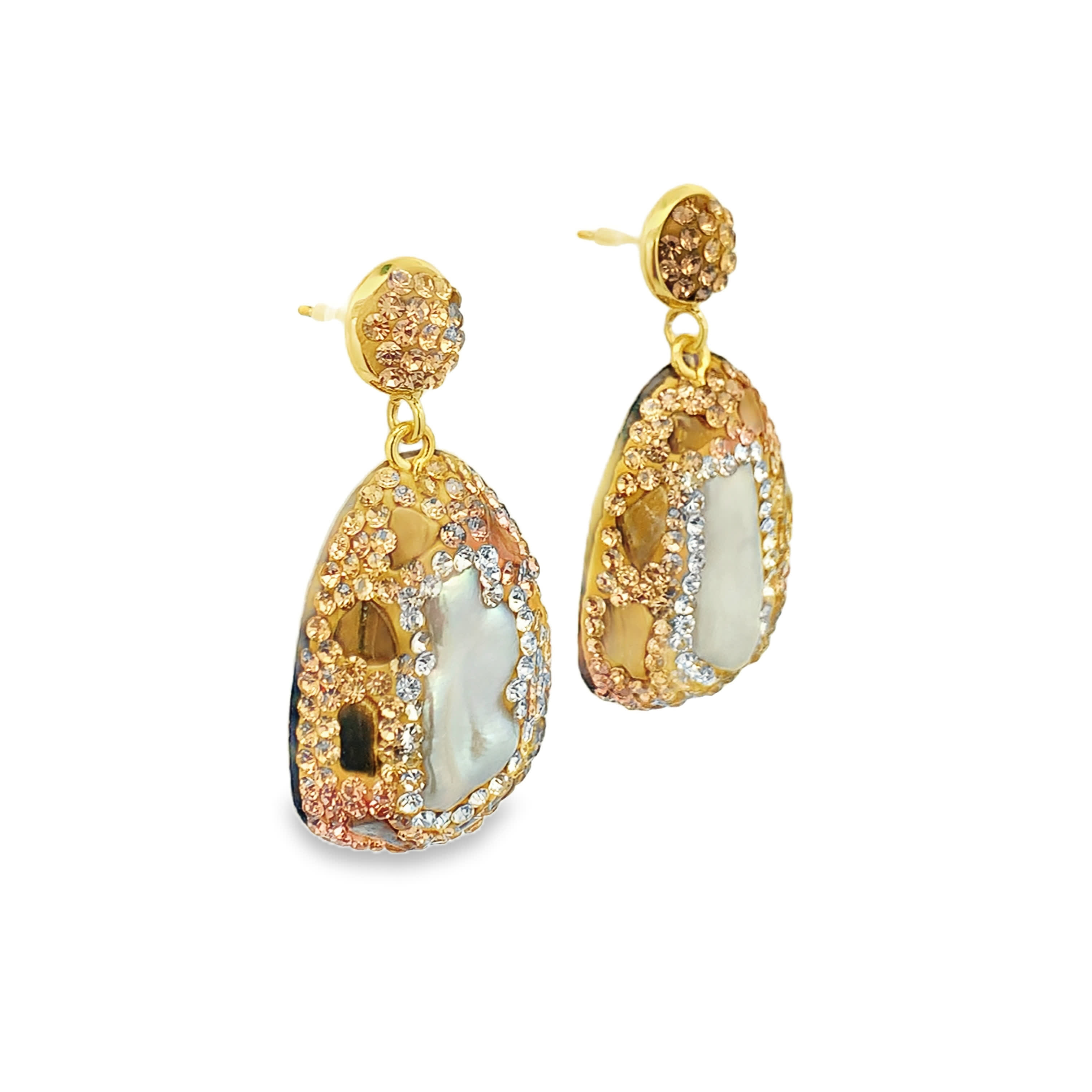 Kolczyki wiszące z pozłacanego metalu z dużymi nieregularnymi kamieniami ozdobnymi