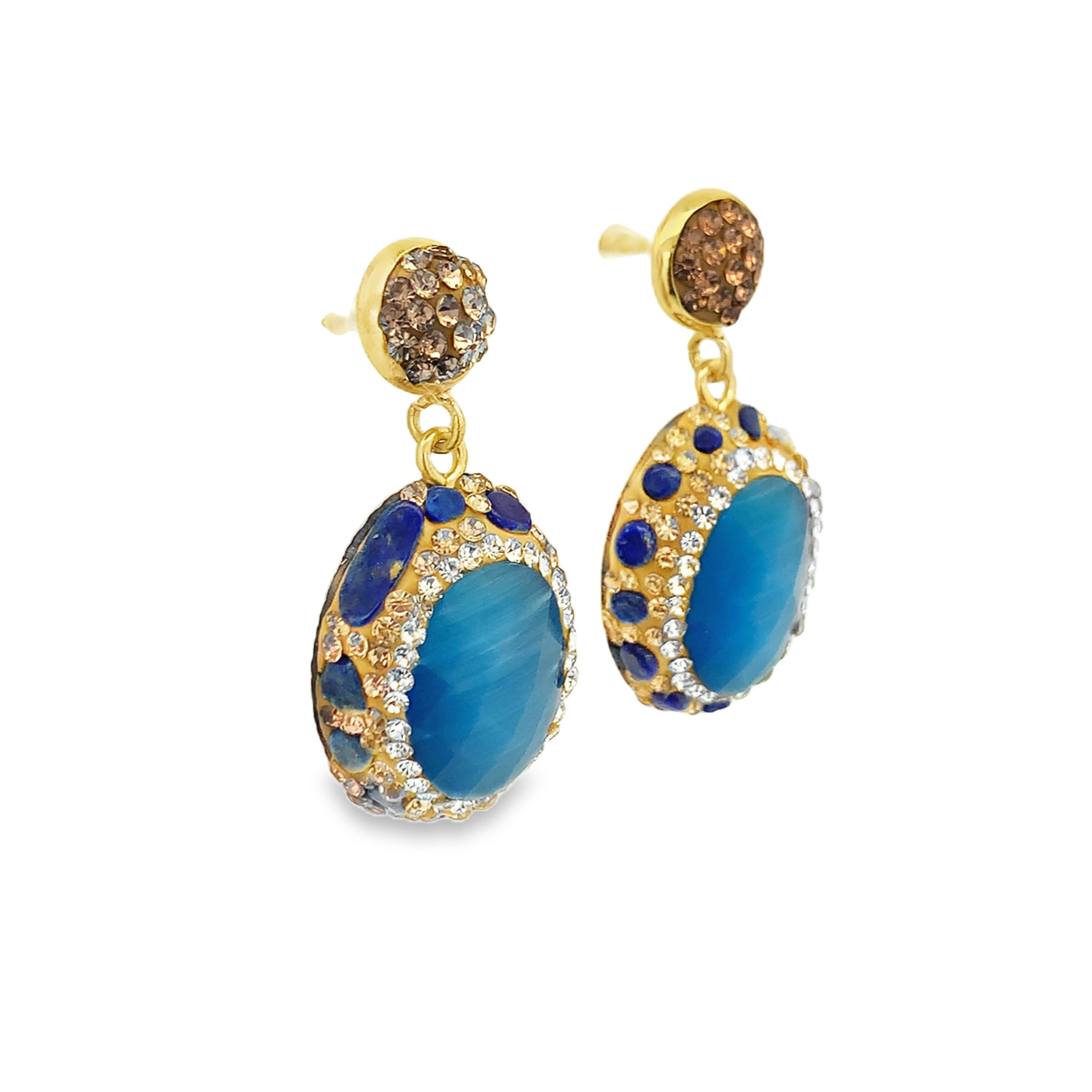 Kolczyki wiszące z pozłacanego metalu z ciemnymi kamieniami ozdobnymi