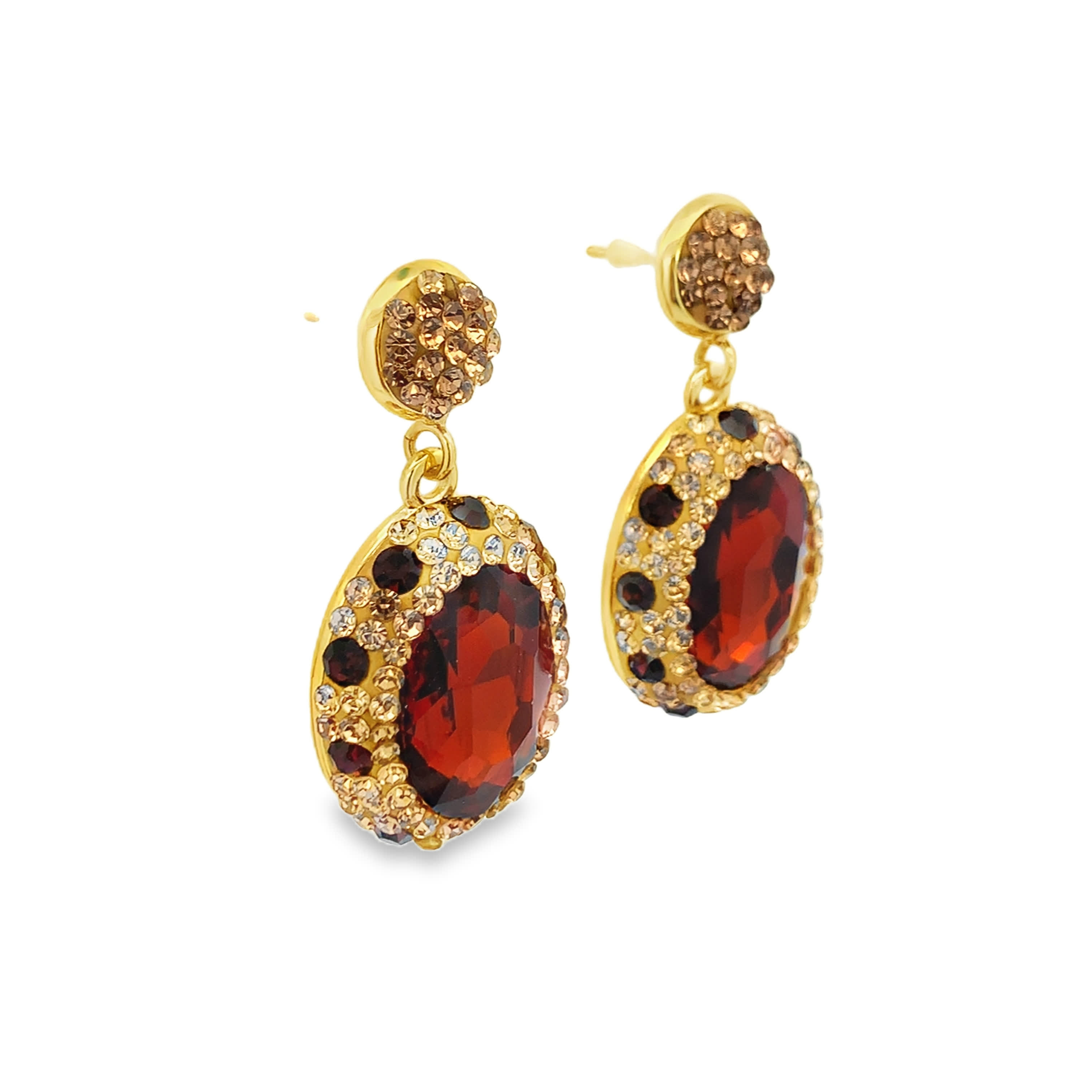 Kolczyki wiszące z pozłacanego metalu z czerwonymi kamieniami ozdobnymi