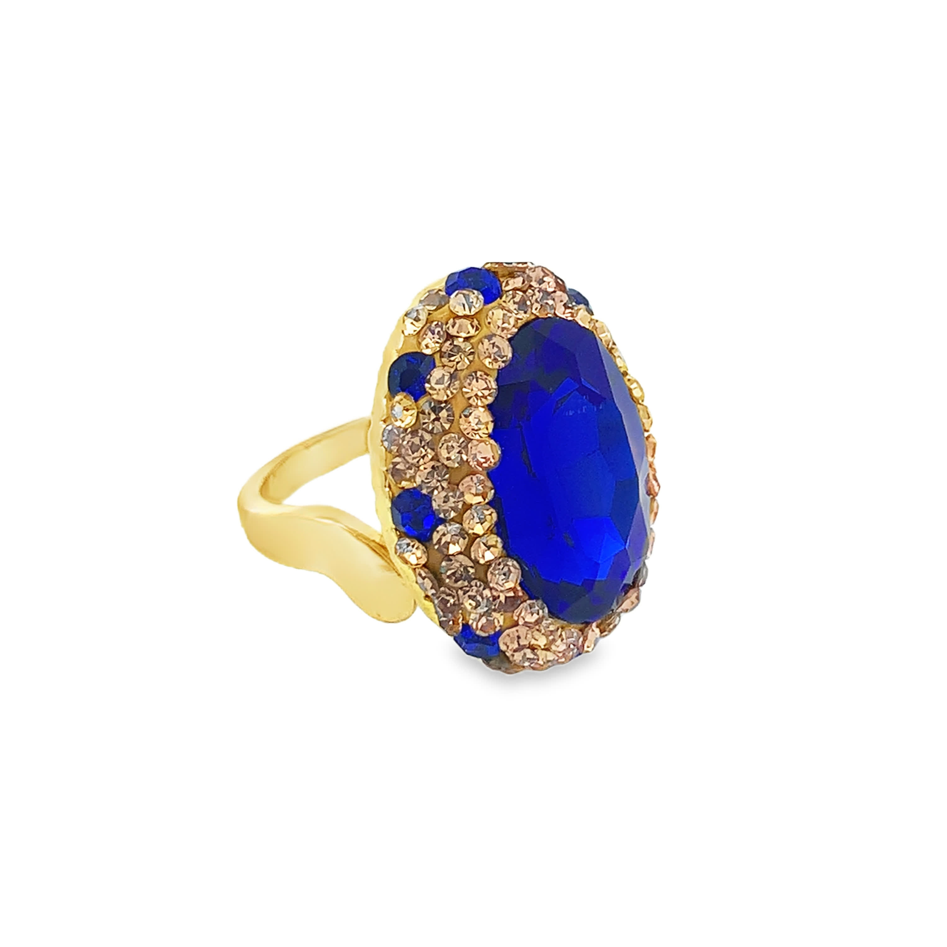 Pierścionek koktajlowy z pozłacanego metalu z ciemnym kamieniem ozdobnym