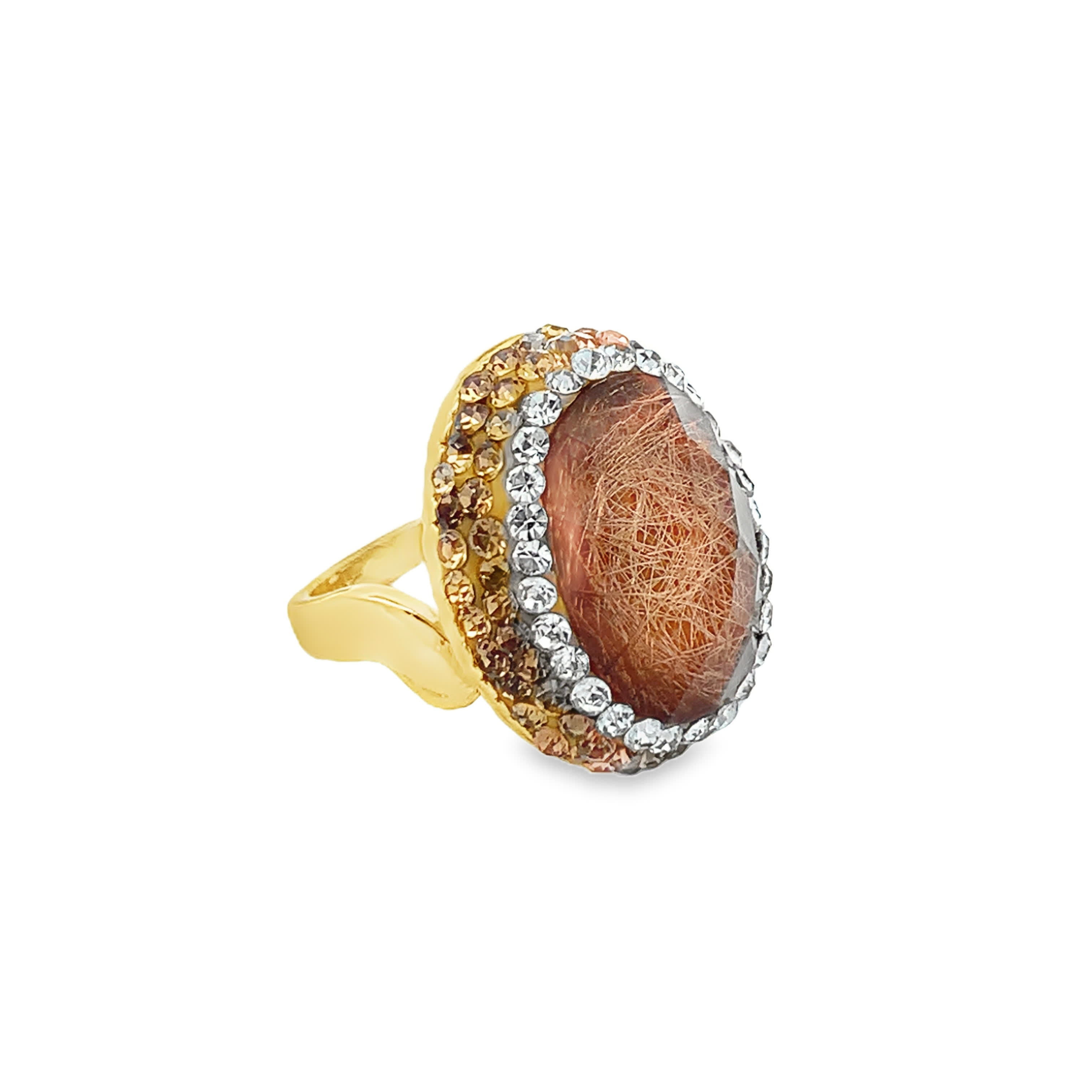 Pierścionek koktajlowy z pozłacanego metalu z gładkim kamieniem ozdobnym