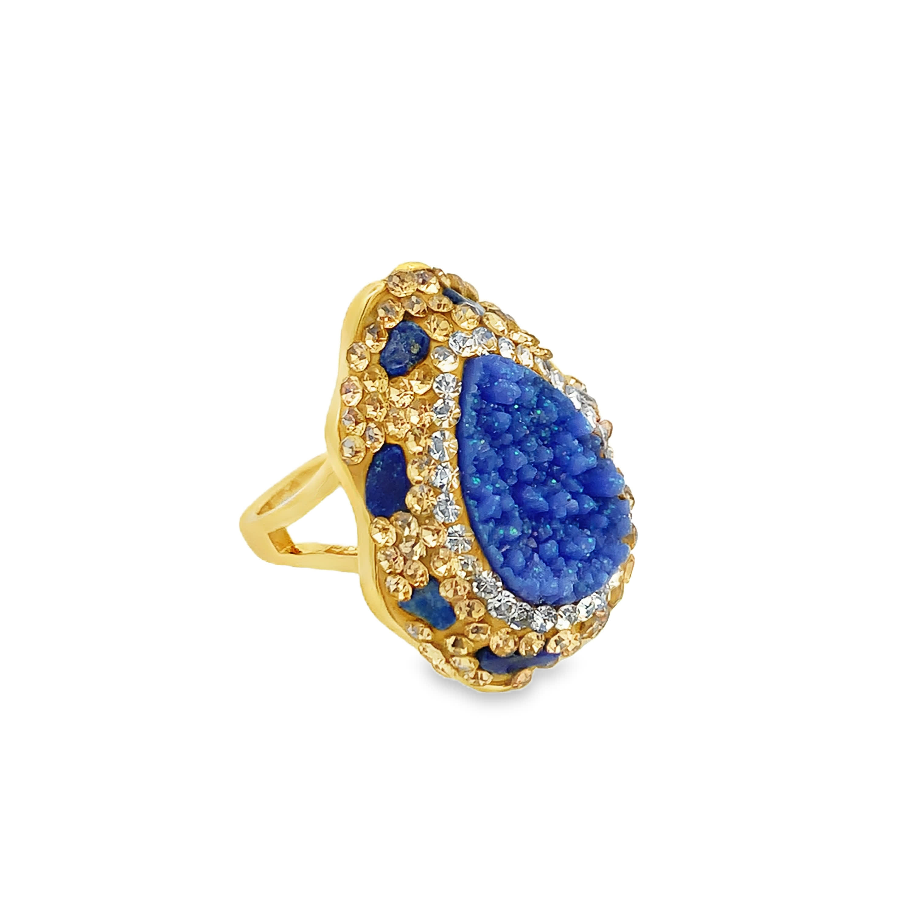 Pierścionek koktajlowy z pozłacanego metalu z kamieniem ozdobnym w kształcie łezki