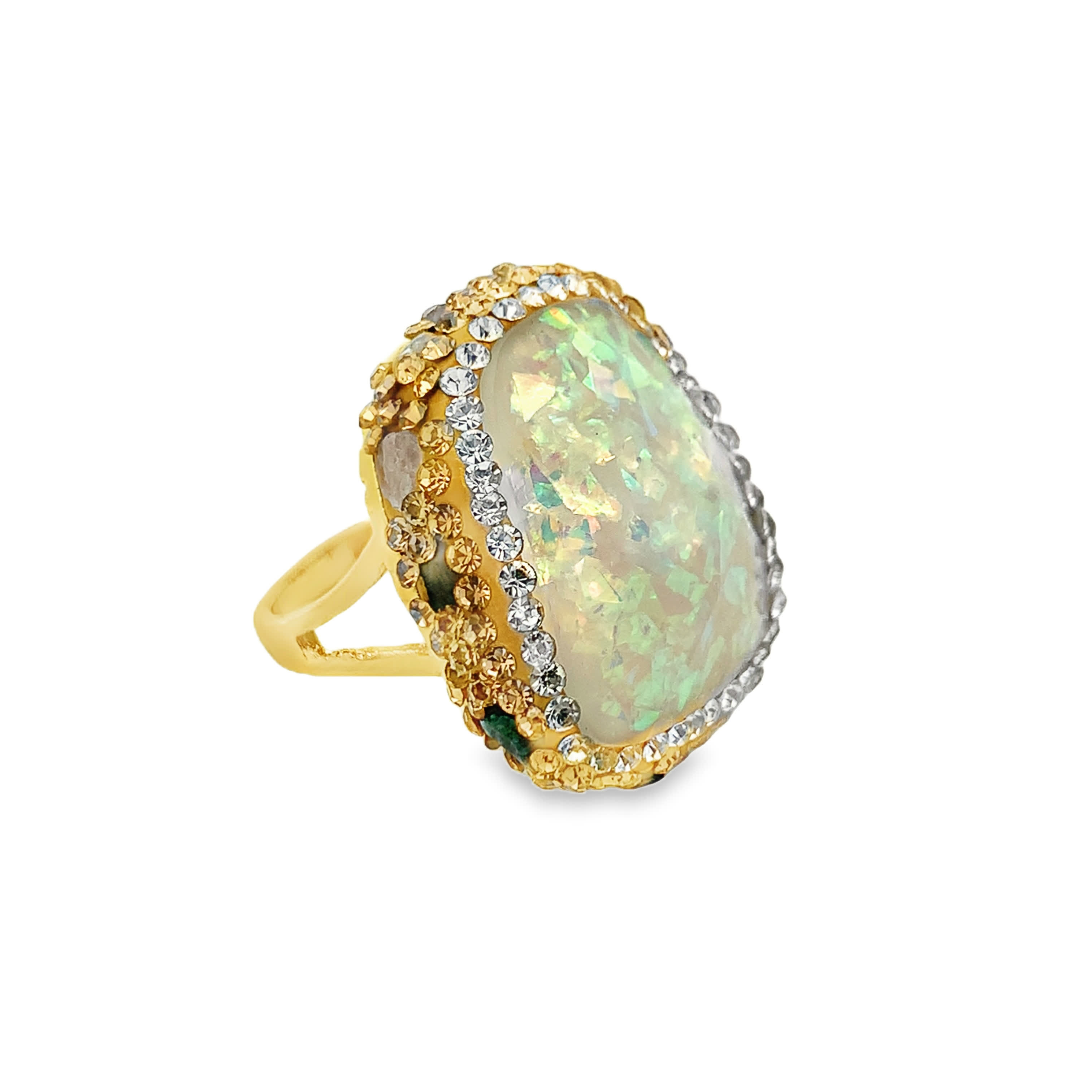 Cabochon Cut Opal Cocktail Ring with Yellow Gold Tone Details