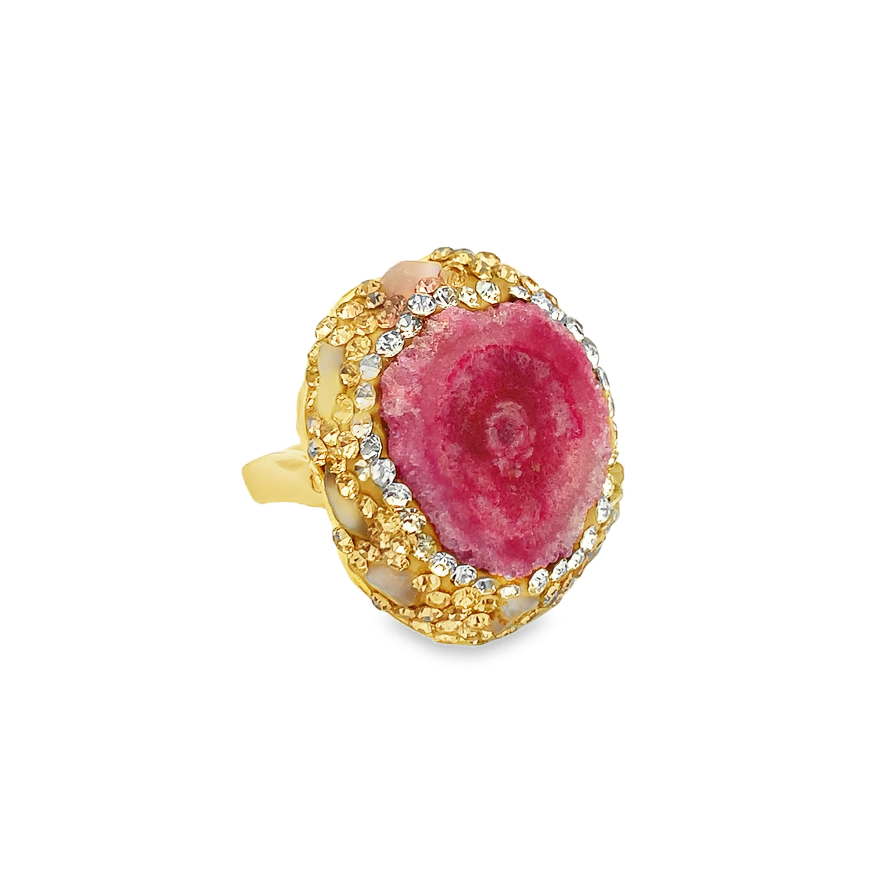 Yellow Gold Cocktail Ring with Reddish Purple Agate Cabochon