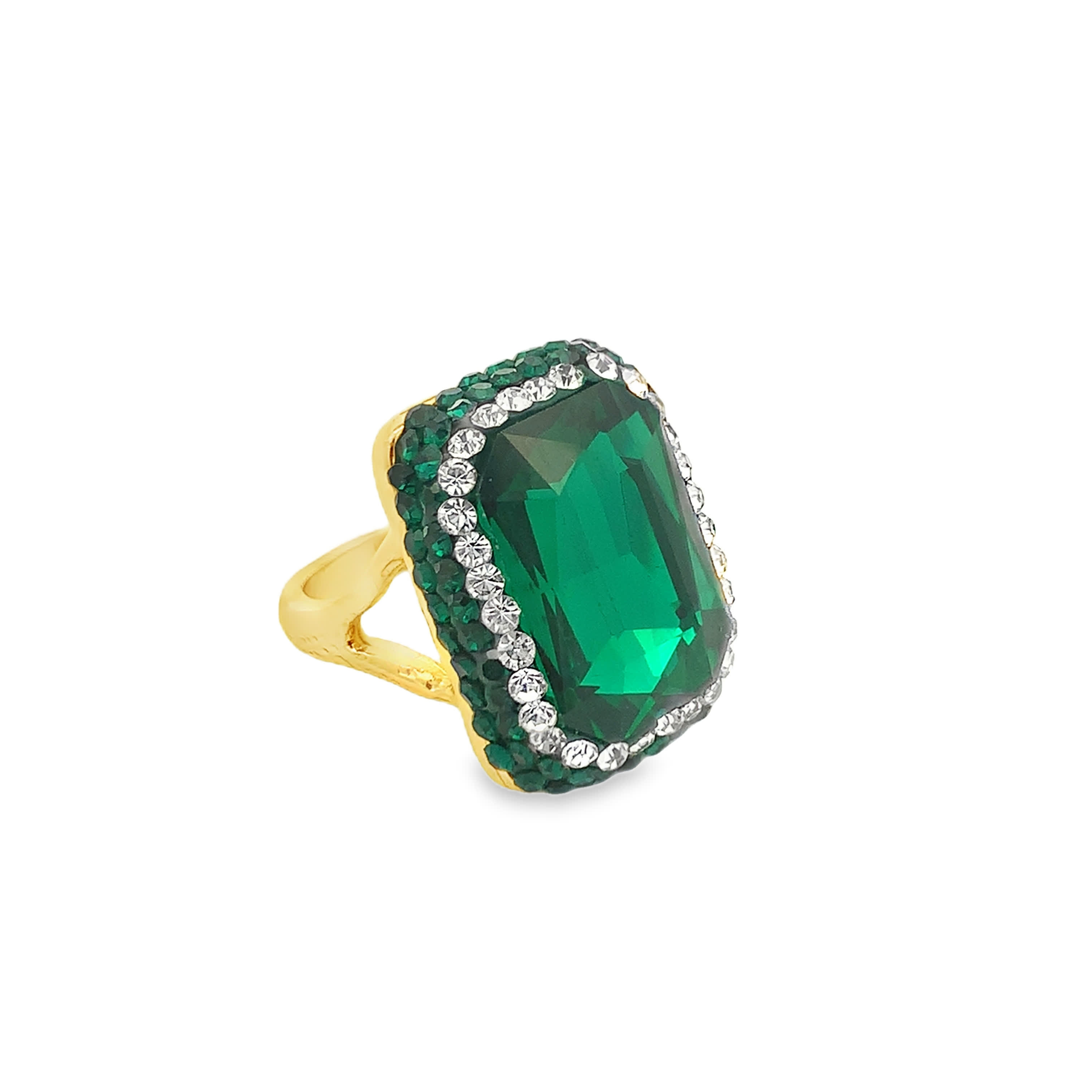 Yellow Gold Cocktail Ring with Emerald Cut Emerald Gemstone