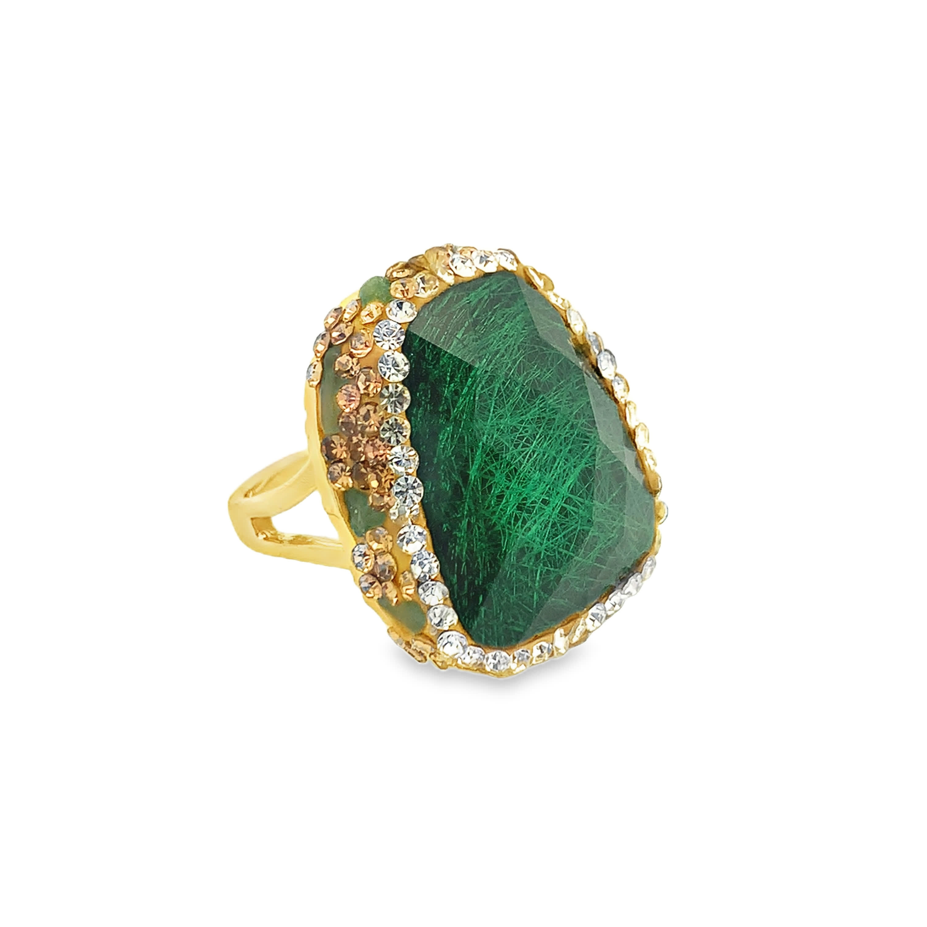 Statement Crystal Cocktail Ring in Yellow Gold Toned Setting