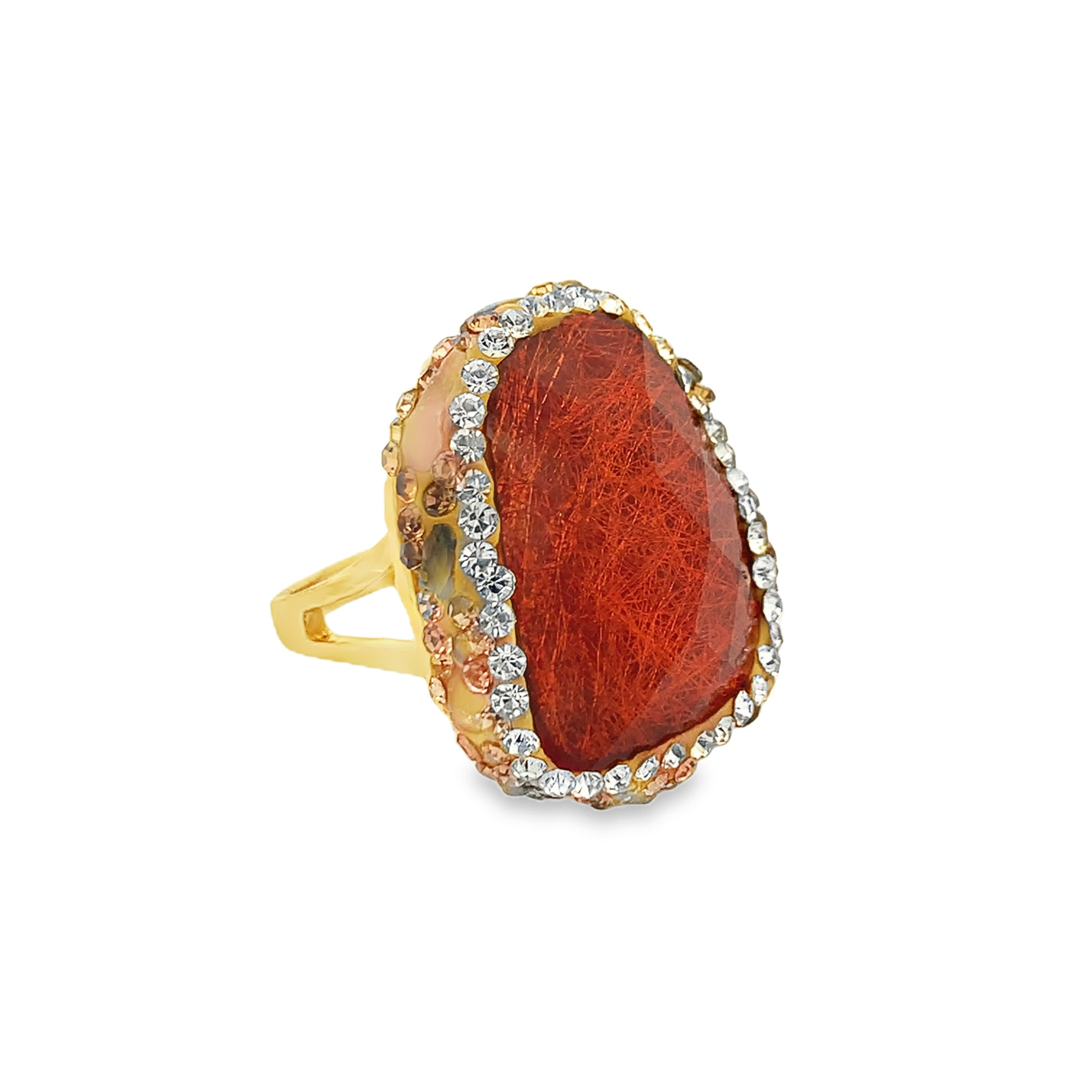 Statement Crystal Cocktail Ring in Yellow Gold Toned Setting