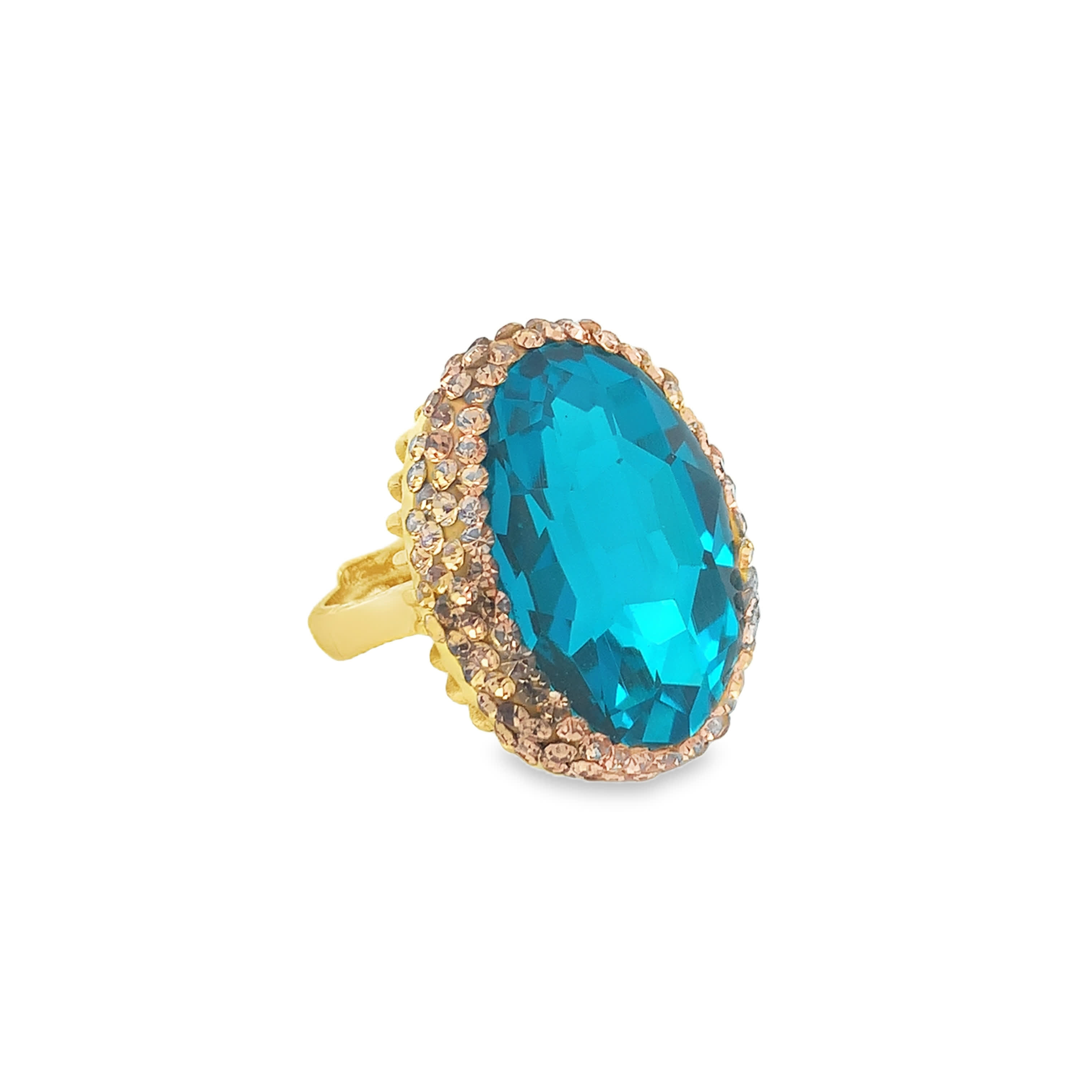 Statement Crystal Cocktail Ring in Yellow Gold Tone