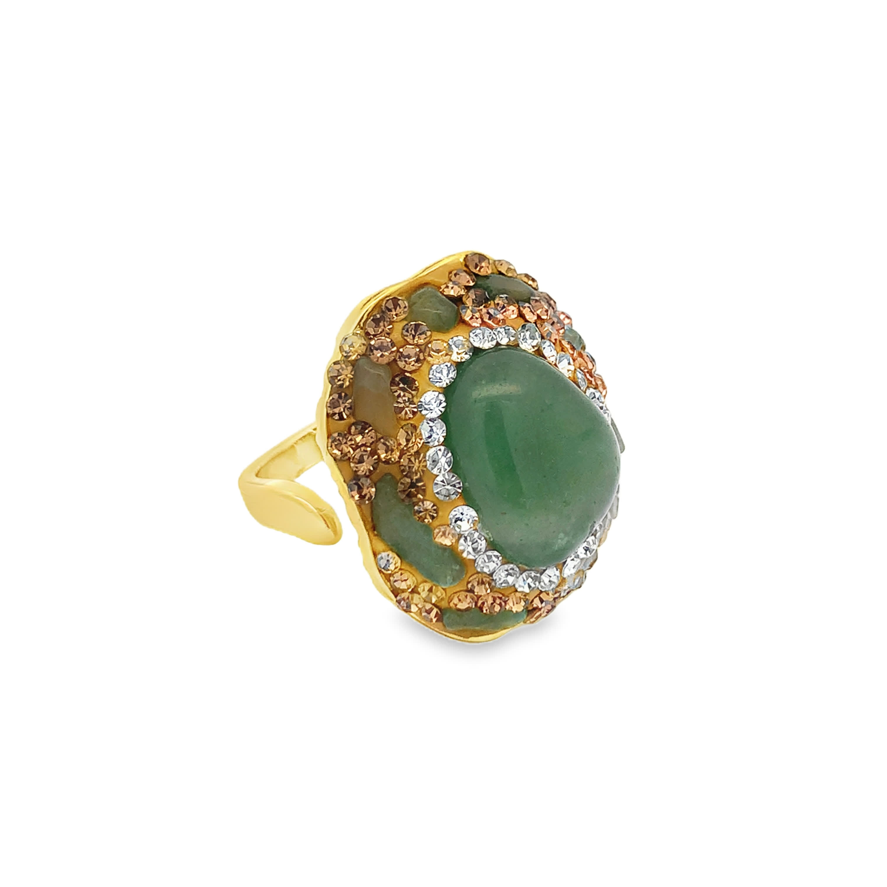 Yellow Gold Cocktail Ring with Green Jade Cabochon