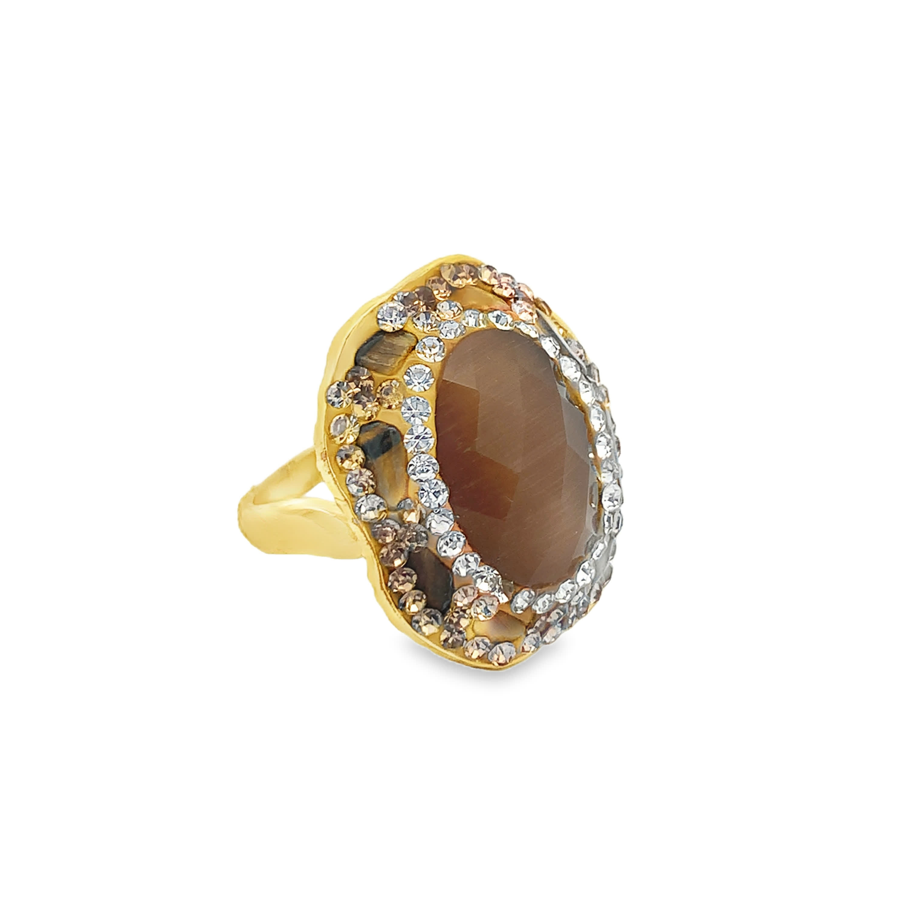 Yellow Gold Cocktail Ring with Oval Cabochon Quartz