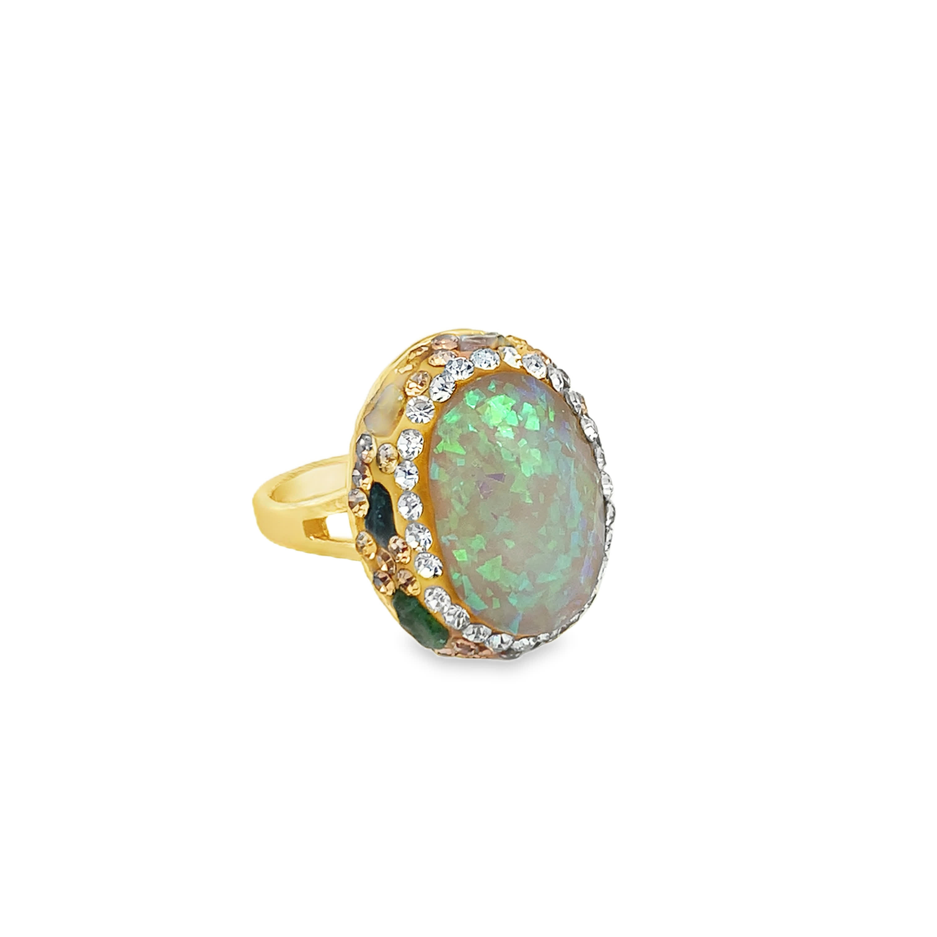 Statement Crystal Cocktail Ring in Yellow Gold Toned Setting