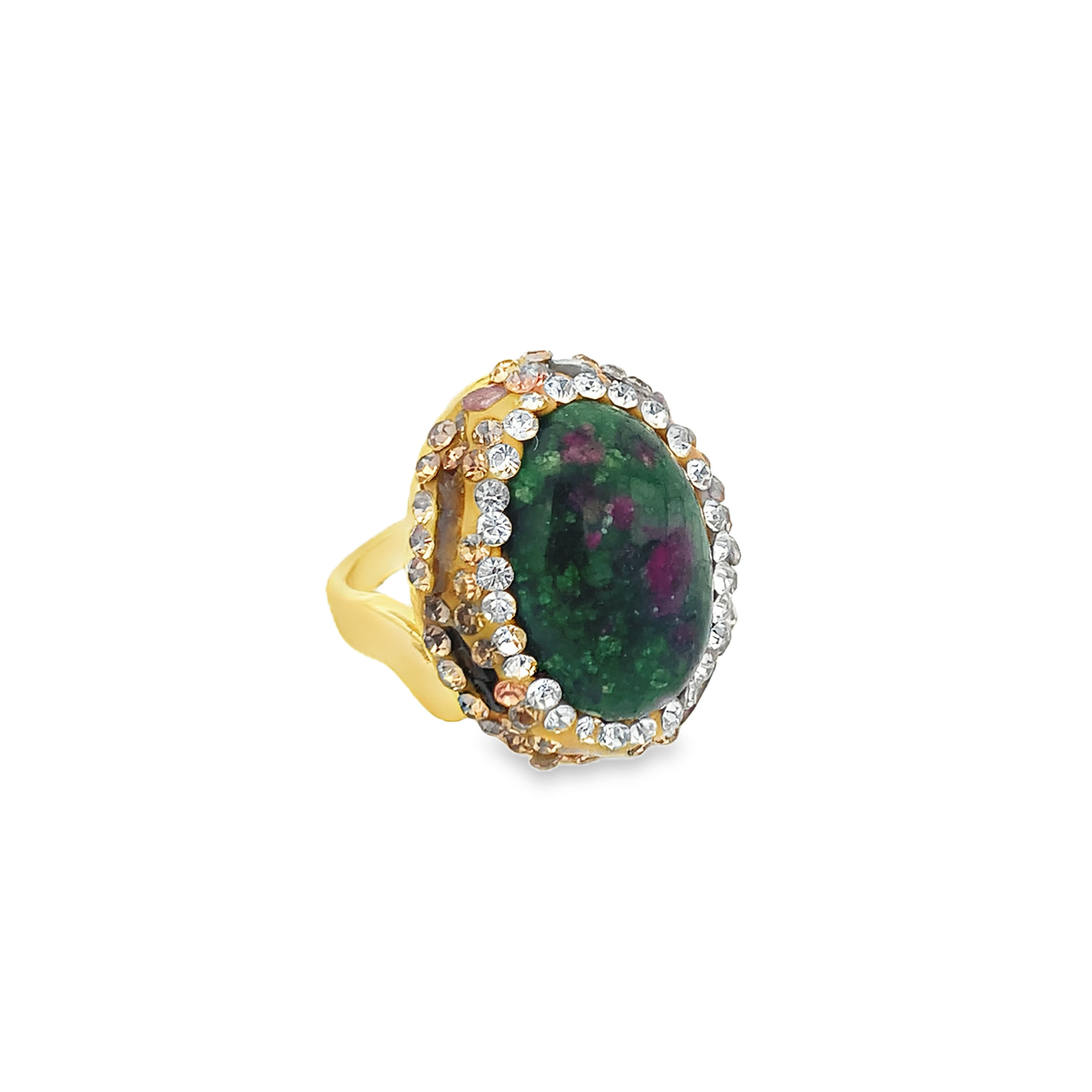Statement Crystal Cocktail Ring in Yellow Gold Toned Setting