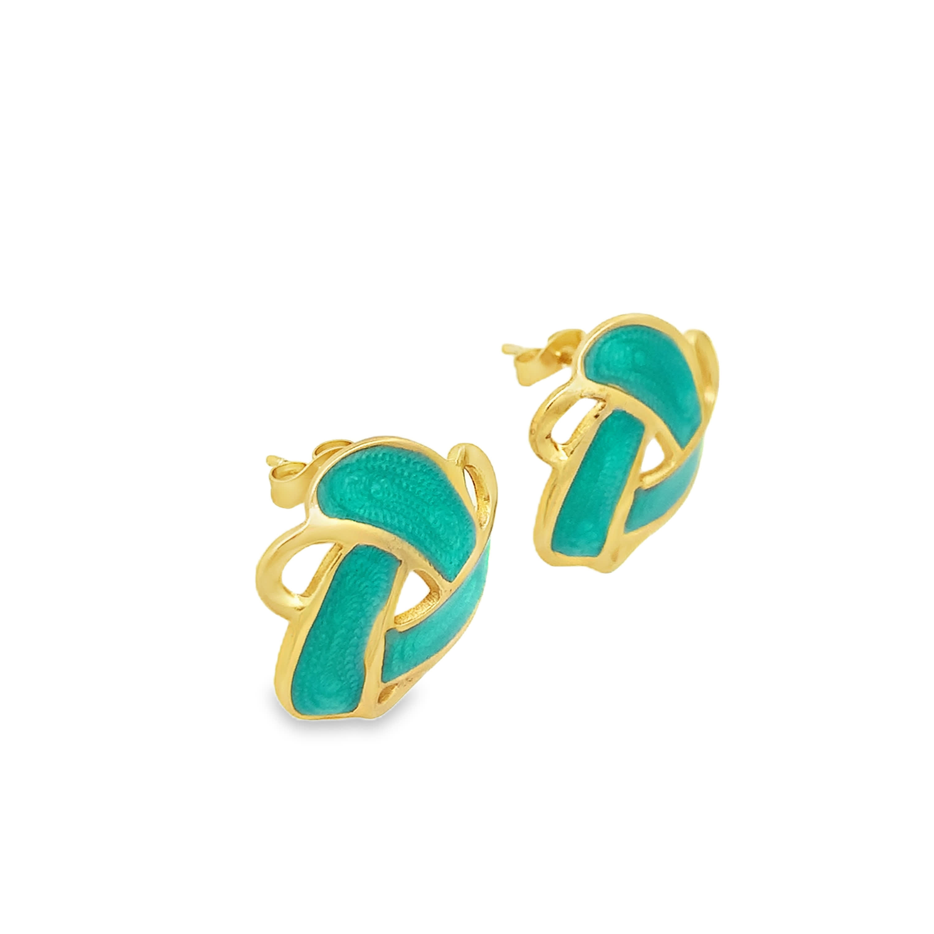 Natural Greenish Blue Carved Baroque Jade Stud Earrings in Yellow Gold