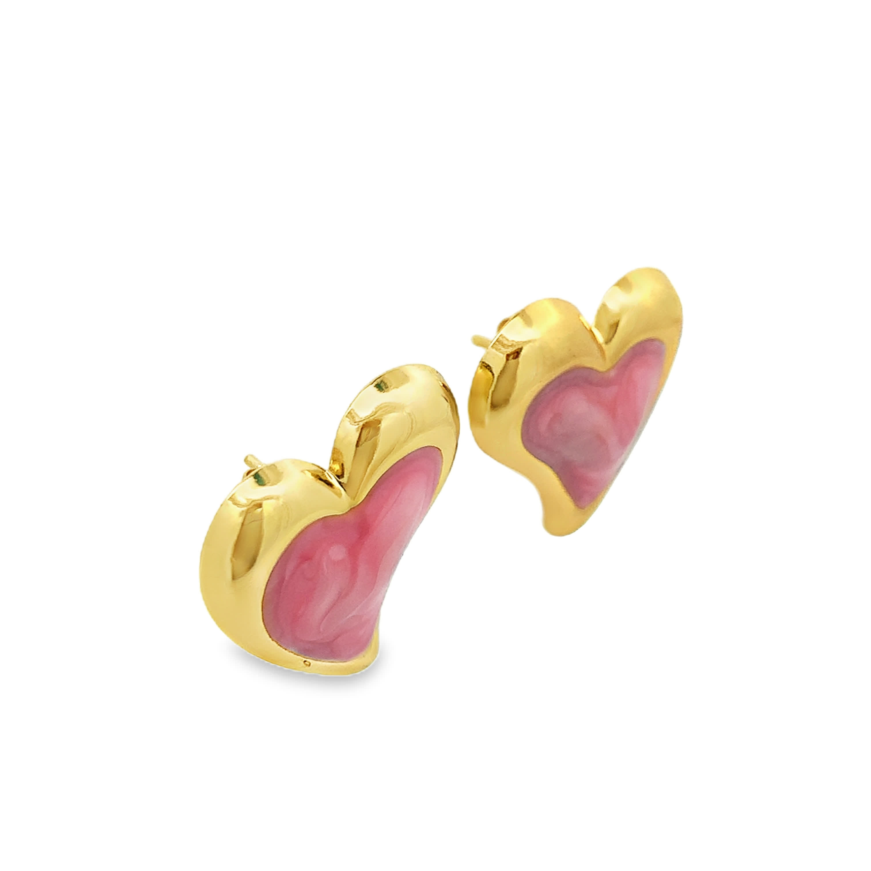 Heart Shaped Red Quartz Cabochon Stud Earrings in Yellow Gold