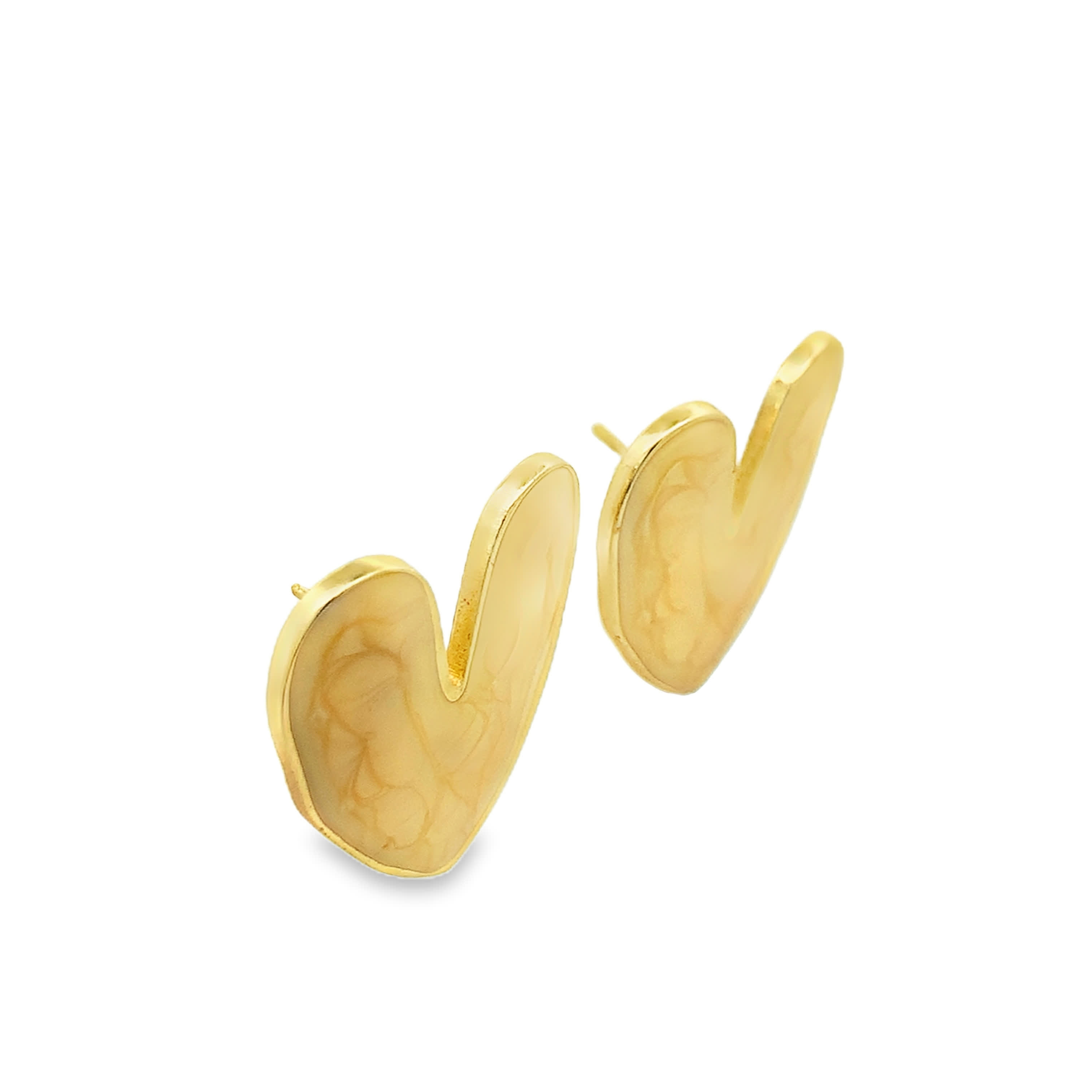 Heart Shaped Yellowish Orange Agate Cabochon Stud Earrings in Polished Yellow Gold