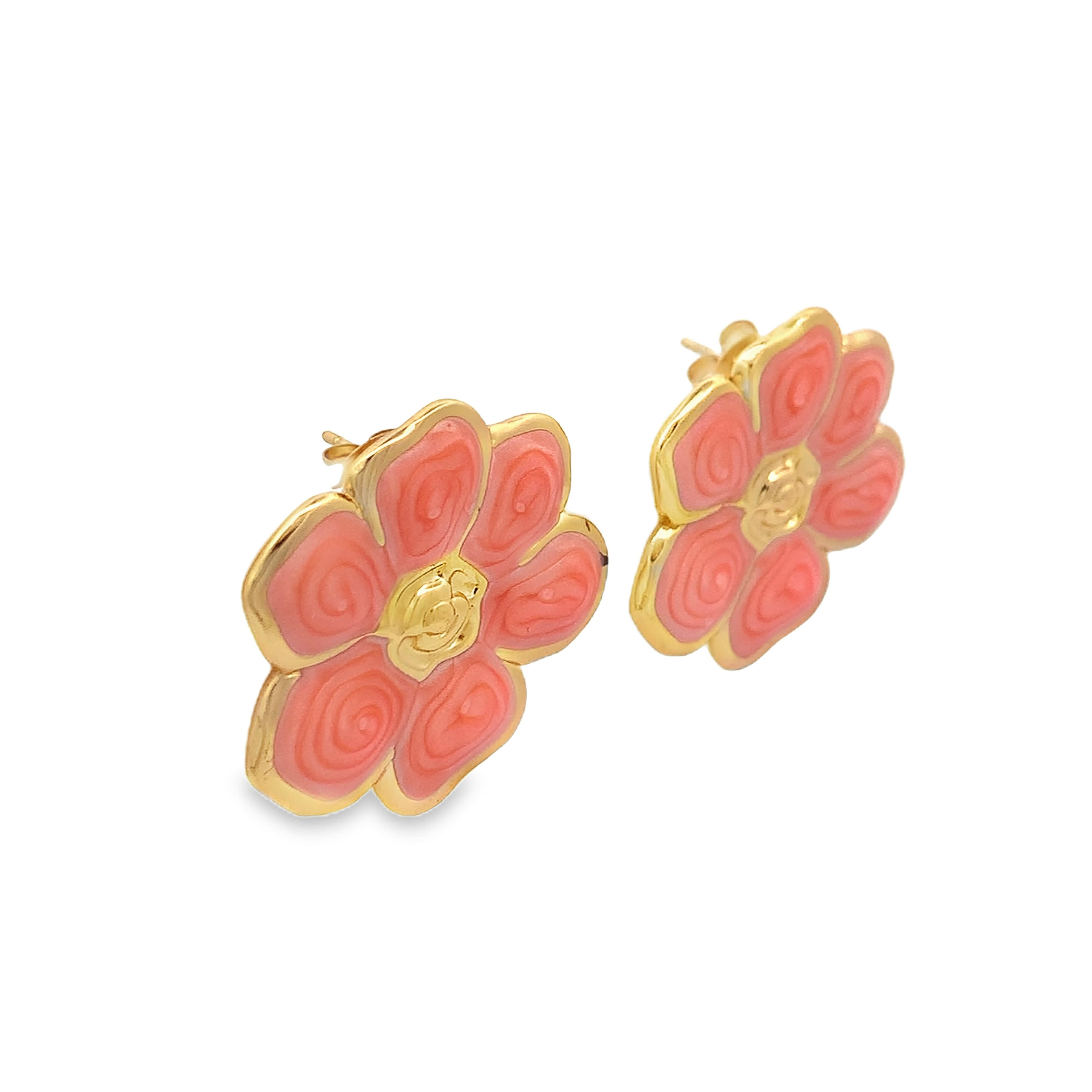 Textured 14k Yellow Gold Floral Petal Stud Earrings