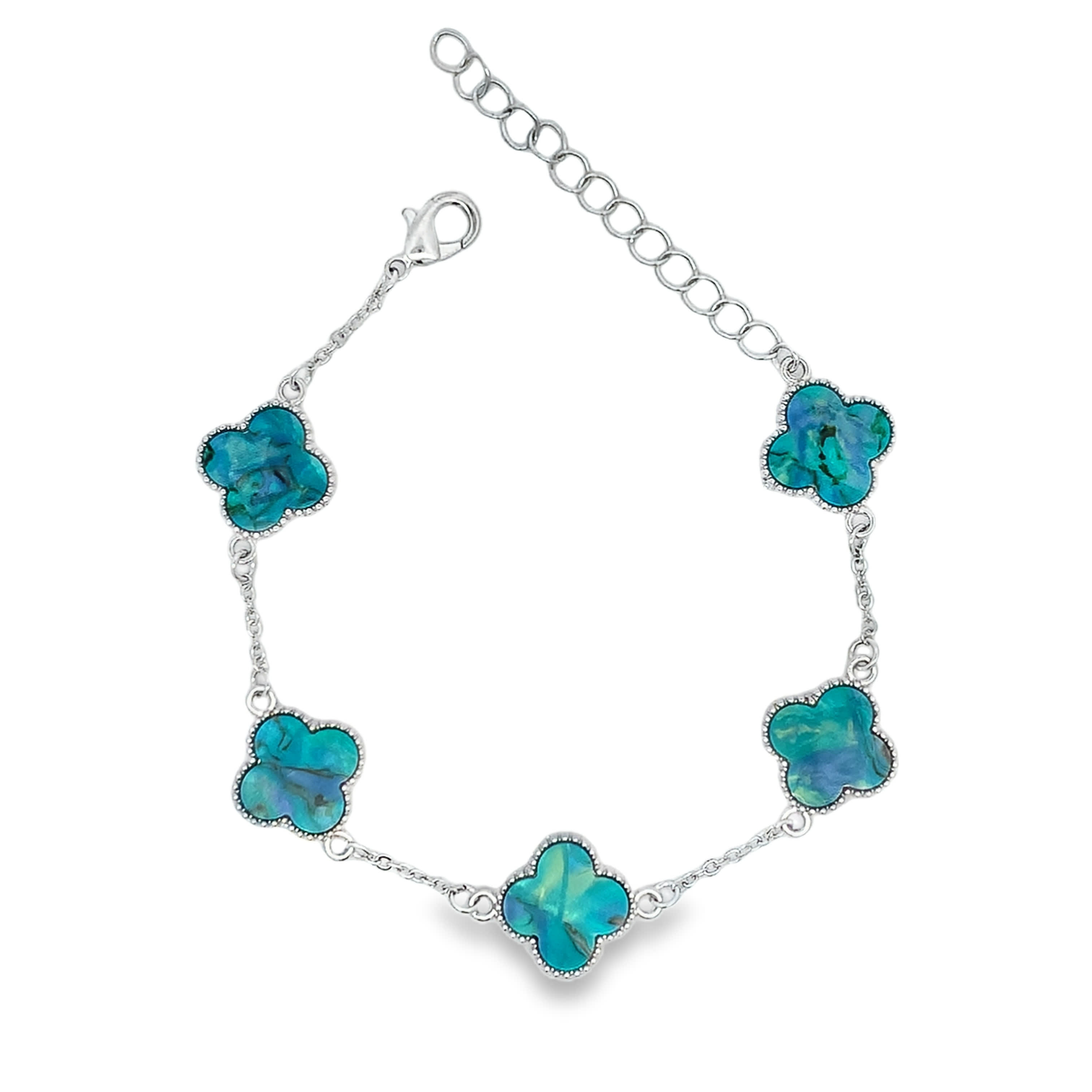White Gold Carved Turquoise Floral Link Bracelet