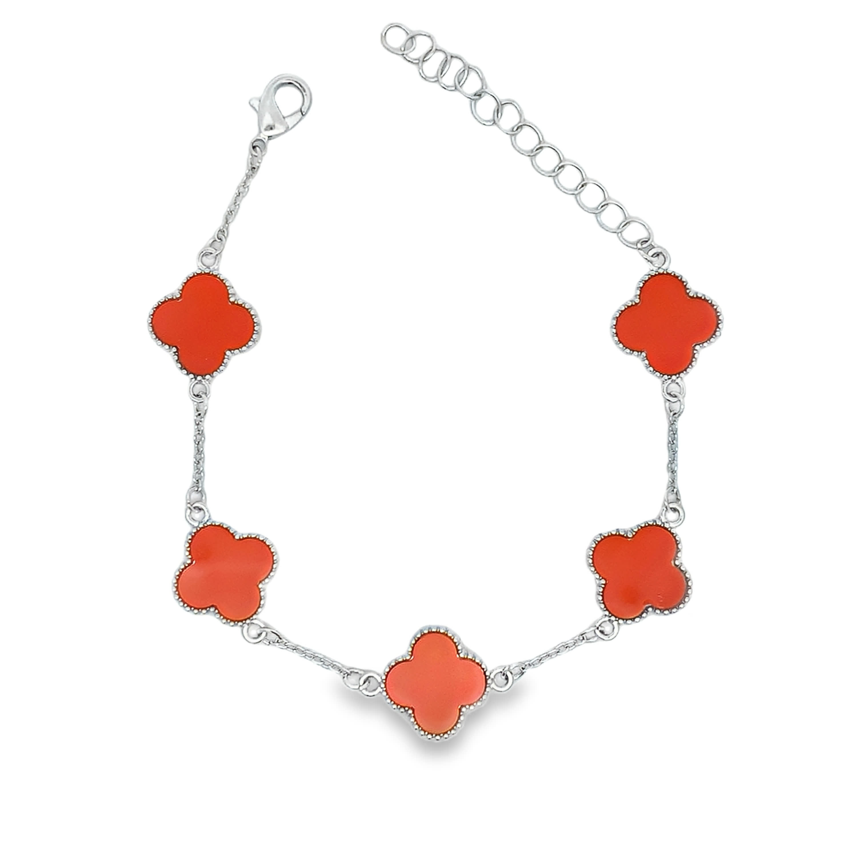 Reddish-Orange Agate Cabochon White Gold Chain Bracelet
