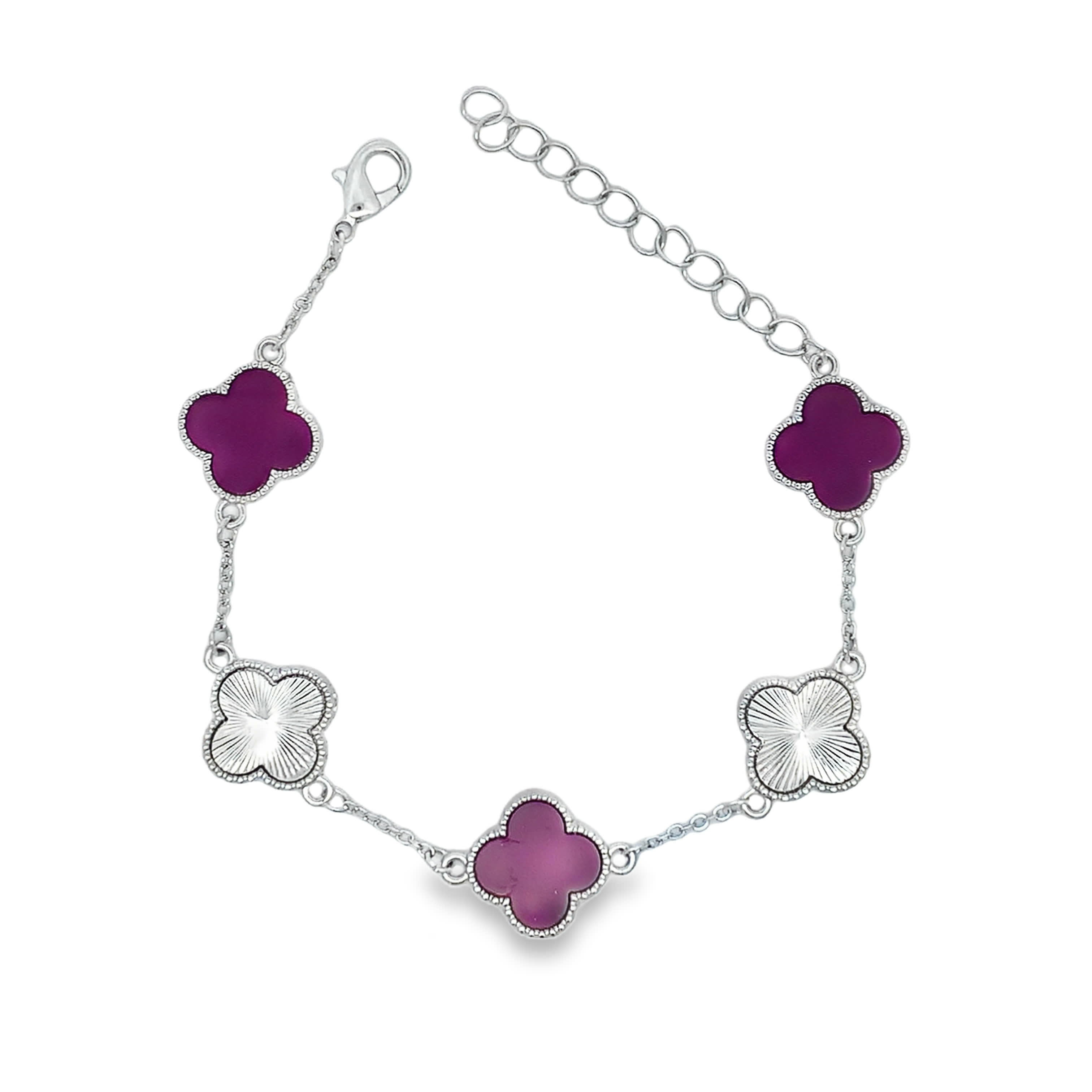 Star Shaped Reddish Purple Carved Agate White Gold Chain Bracelet