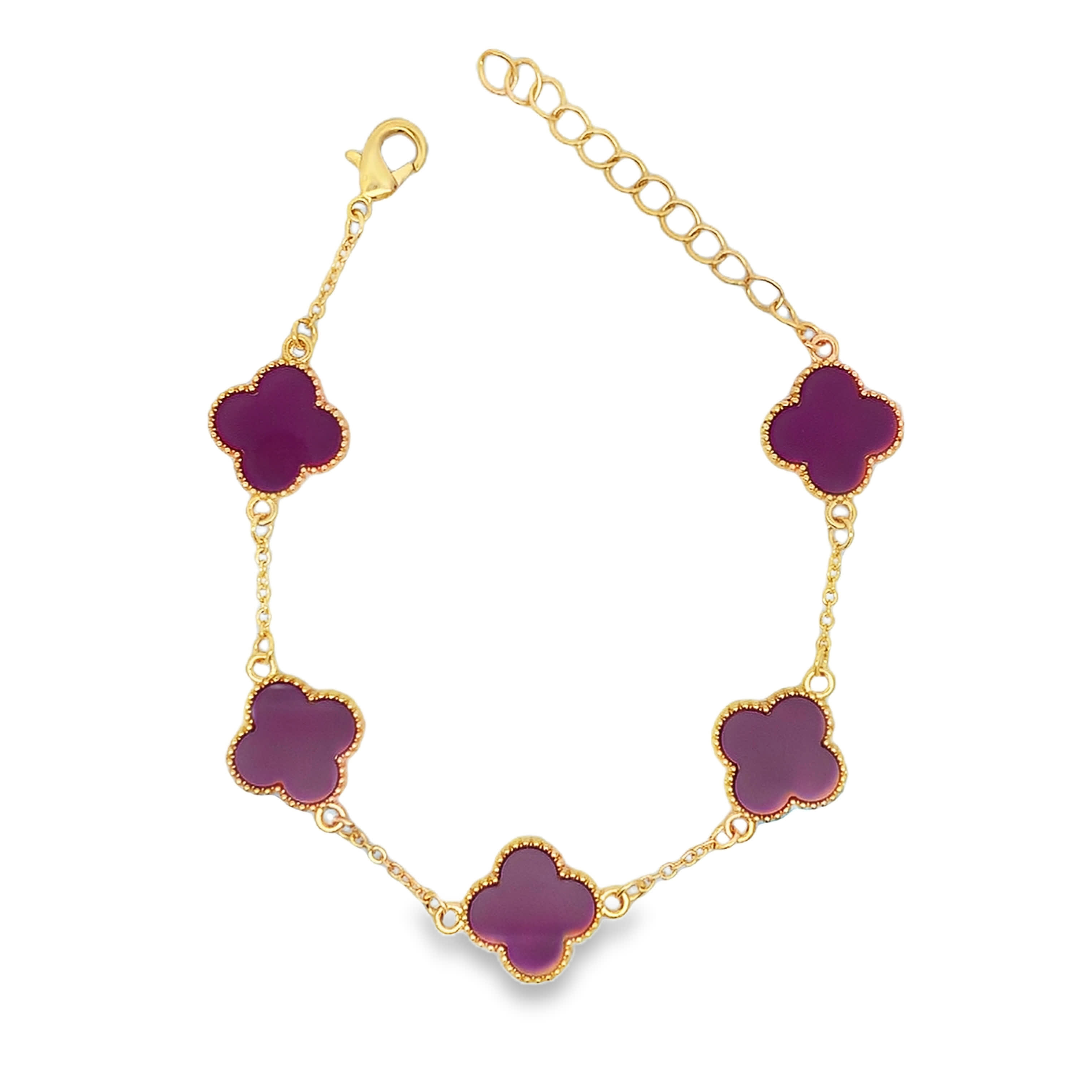 Star Shaped Reddish Purple Agate Cabochon Yellow Gold Chain Bracelet